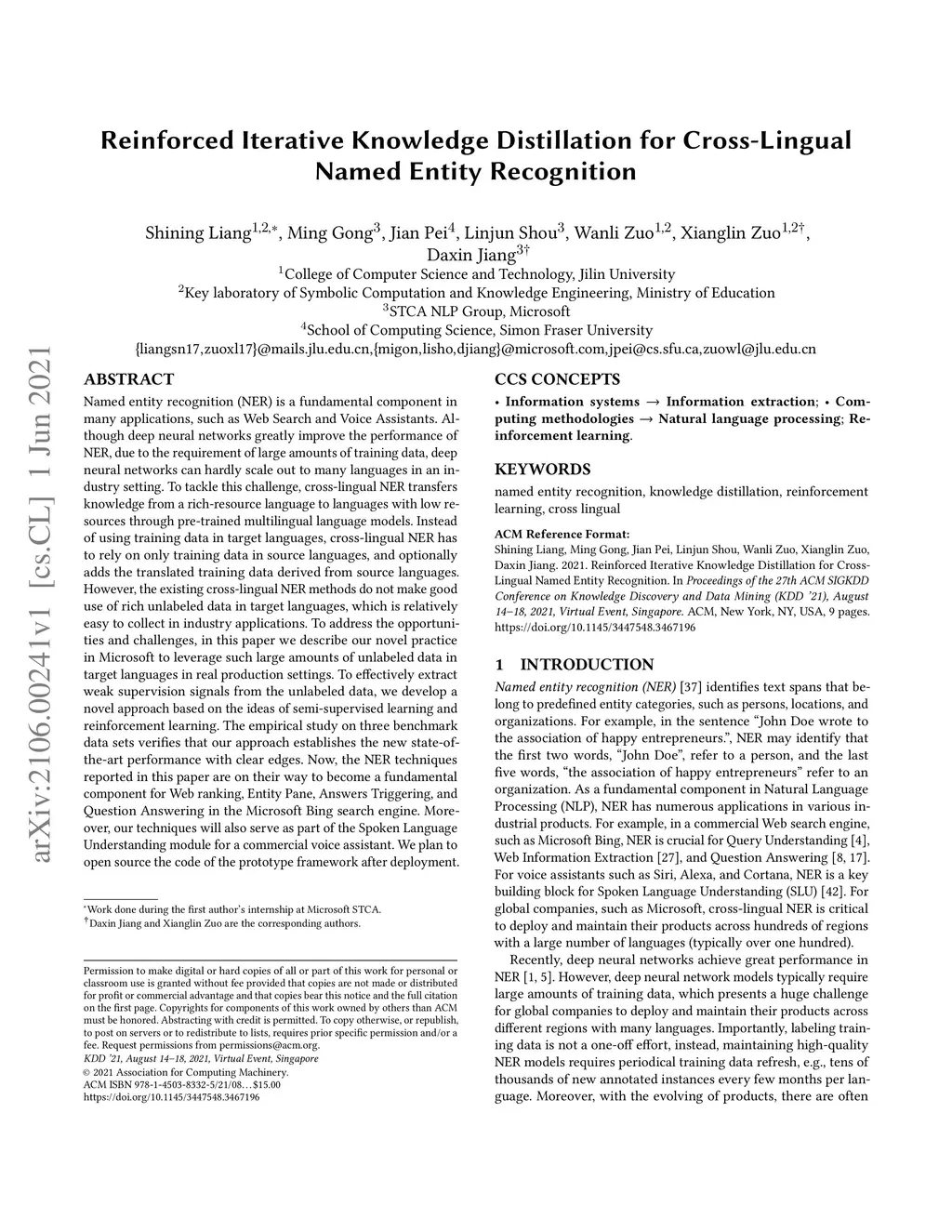 Reinforced Iterative Knowledge Distillation for Cross-Lingual Named