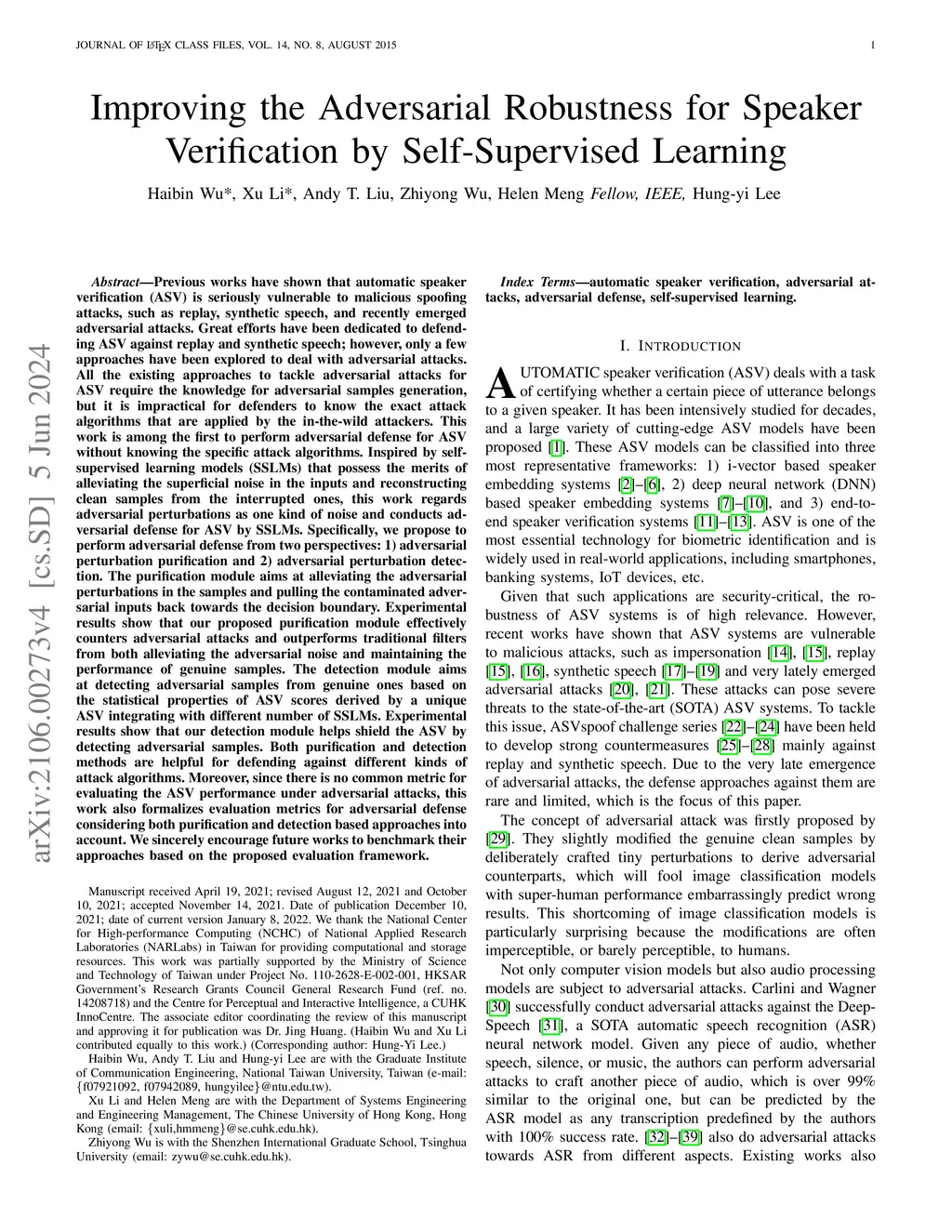 Previous works have shown that automatic speaker verification (ASV) is seriously vulnerable to malicious spoofing attacks, such as replay, synthetic speech, and recently emerged adversarial attacks. Great efforts have been dedicated to defending ASV against replay and synthetic speech; however, only a few approaches have been explored to deal with adversarial attacks. All the existing approaches to tackle adversarial attacks for ASV require the knowledge for adversarial samples generation, but it is impractical for defenders to know the exact attack algorithms that are applied by the in-the-wild attackers. This work is among the first to perform adversarial defense for ASV without knowing the specific attack algorithms. Inspired by self-supervised learning models (SSLMs) that possess the merits of alleviating the superficial noise in the inputs and reconstructing clean samples from the interrupted ones, this work regards adversarial perturbations as one kind of noise and conducts adversarial defense for ASV by SSLMs. Specifically, we propose to perform adversarial defense from two perspectives: 1) adversarial perturbation purification and 2) adversarial perturbation detection. Experimental results show that our detection module effectively shields the ASV by detecting adversarial samples with an accuracy of around 80%. Moreover, since there is no common metric for evaluating the adversarial defense performance for ASV, this work also formalizes evaluation metrics for adversarial defense considering both purification and detection based approaches into account. We sincerely encourage future works to benchmark their approaches based on the proposed evaluation framework.