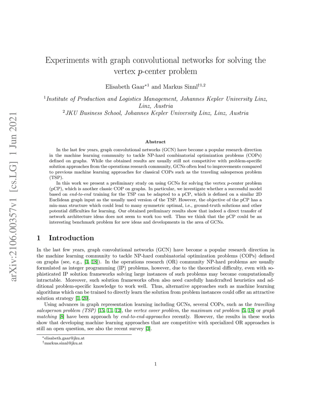 In the last few years, graph convolutional networks (GCN) have become a popular research direction in the machine learning community to tackle NP-hard combinatorial optimization problems (COPs) defined on graphs. While the obtained results are usually still not competitive with problem-specific solution approaches from the operations research community, GCNs often lead to improvements compared to previous machine learning approaches for classical COPs such as the traveling salesperson problem (TSP). In this work we present a preliminary study on using GCNs for solving the vertex p-center problem (PCP), which is another classic COP on graphs. In particular, we investigate whether a successful model based on end-to-end training for the TSP can be adapted to a PCP, which is defined on a similar 2D Euclidean graph input as the usually used version of the TSP. However, the objective of the PCP has a min-max structure which could lead to many symmetric optimal, i.e., ground-truth solutions and other potential difficulties for learning. Our obtained preliminary results show that indeed a direct transfer of network architecture ideas does not seem to work too well. Thus we think that the PCP could be an interesting benchmark problem for new ideas and developments in the area of GCNs.