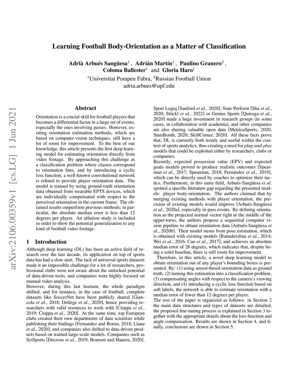 Learning Football Body-Orientation as a Matter of Classification