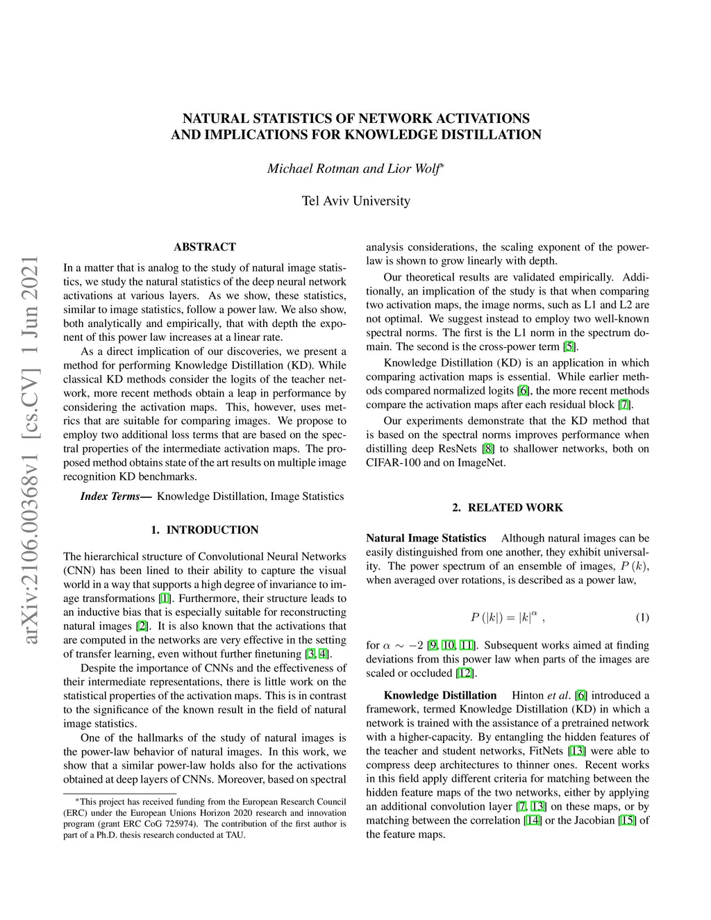 In a matter that is analog to the study of natural image statistics, we study the natural statistics of the deep neural network activations at various layers. As we show, these statistics, similar to image statistics, follow a power law. We also show, both analytically and empirically, that with depth the exponent of this power law increases at a linear rate. As a direct implication of our discoveries, we present a method for performing Knowledge Distillation (KD). While classical KD methods consider the logits of the teacher network, more recent methods obtain a leap in performance by considering the activation maps. This, however, uses metrics that are suitable for comparing images. We propose to employ two additional loss terms that are based on the spectral properties of the intermediate activation maps. The proposed method obtains state of the art results on multiple image recognition KD benchmarks.
