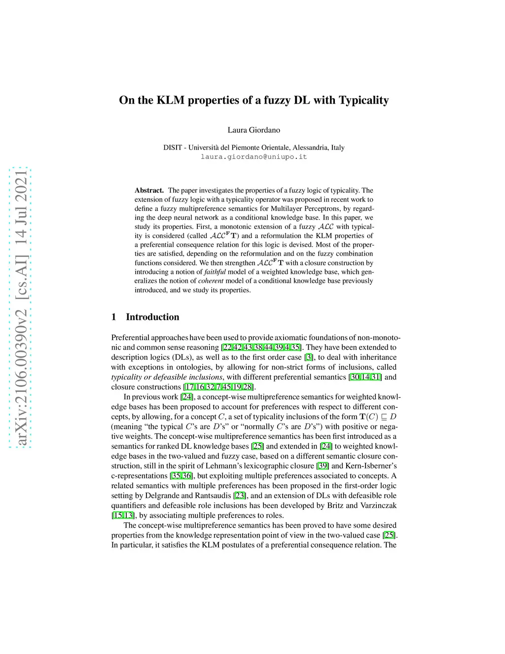 The paper investigates the properties of a fuzzy logic of typicality. The extension of fuzzy logic with a typicality operator was proposed in recent work to define a fuzzy multipreference semantics for Multilayer Perceptrons, by regarding the deep neural network as a conditional knowledge base. In this paper, we study its properties. First, a monotonic extension of a fuzzy ALC with typicality is considered (called ALC^FT) and a reformulation the KLM properties of a preferential consequence relation for this logic is devised. Most of the properties are satisfied, depending on the reformulation and on the fuzzy combination functions considered. We then strengthen ALC^FT with a closure construction by introducing a notion of faithful model of a weighted knowledge base, which generalizes the notion of coherent model of a conditional knowledge base previously introduced, and we study its properties.