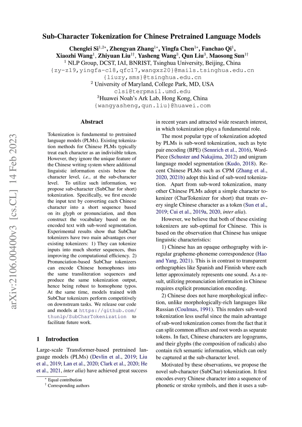 Sub-Character Tokenization for Chinese Pretrained Language Models