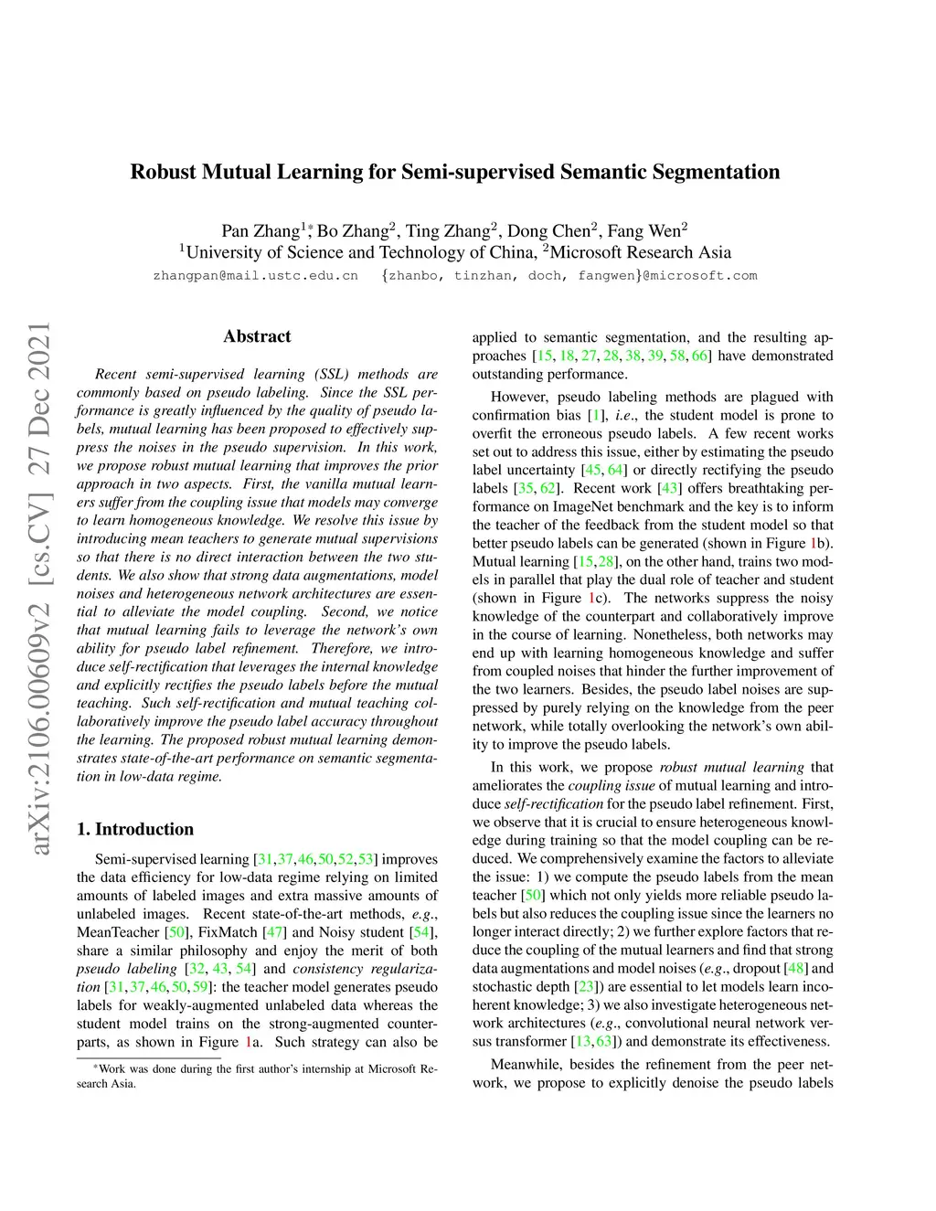 Recent semi-supervised learning (SSL) methods are commonly based on pseudo labeling. Since the SSL performance is greatly influenced by the quality of pseudo labels, mutual learning has been proposed to effectively suppress the noises in the pseudo supervision. In this work, we propose robust mutual learning that improves the prior approach in two aspects. First, the vanilla mutual learners suffer from the coupling issue that models may converge to learn homogeneous knowledge. We resolve this issue by introducing mean teachers to generate mutual supervisions so that there is no direct interaction between the two students. We also show that strong data augmentations, model noises and heterogeneous network architectures are essential to alleviate the model coupling. Second, we notice that mutual learning fails to leverage the network's own ability for pseudo label refinement. Therefore, we introduce self-rectification that leverages the internal knowledge and explicitly rectifies the pseudo labels before the mutual teaching. Such self-rectification and mutual teaching collaboratively improve the pseudo label accuracy throughout the learning. The proposed robust mutual learning demonstrates state-of-the-art performance on semantic segmentation in low-data regime.