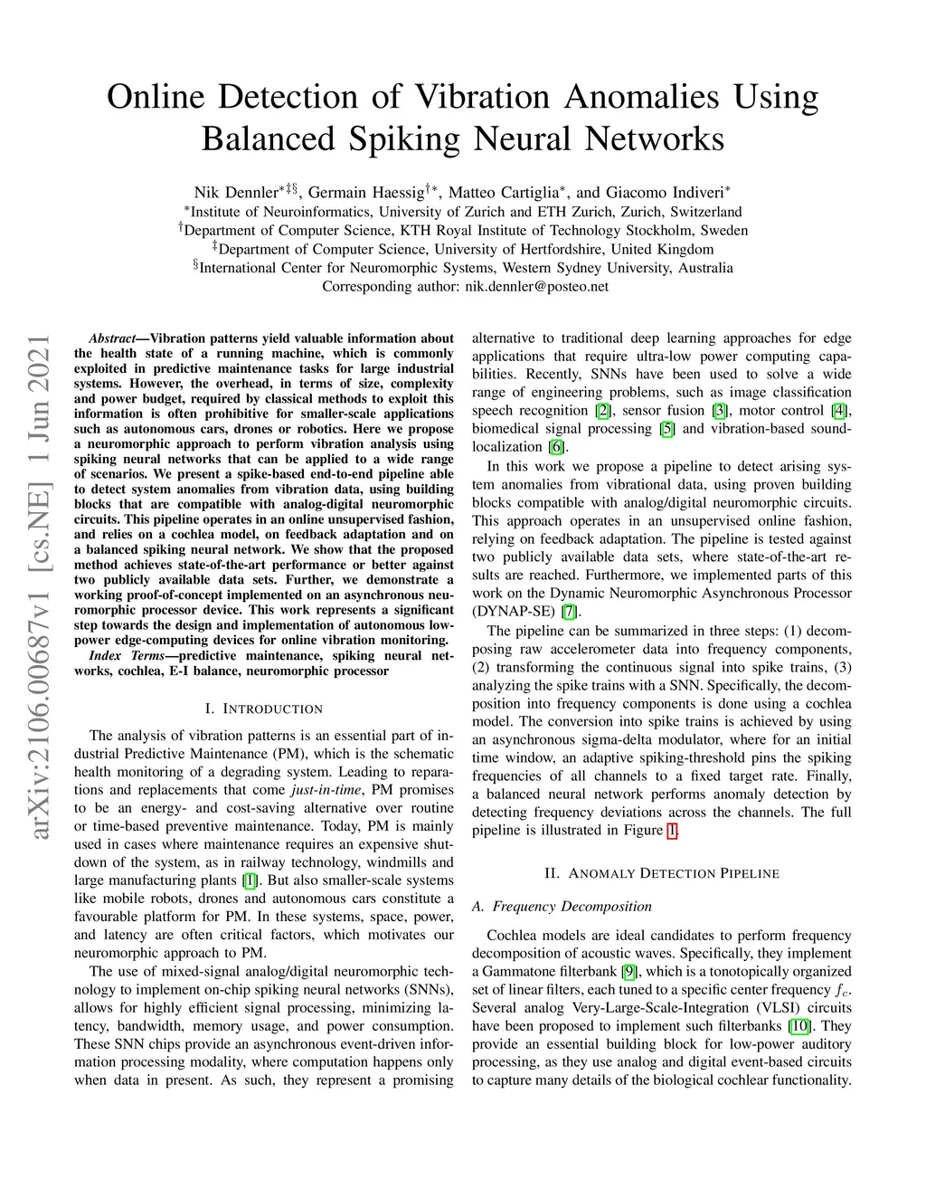 Online Detection of Vibration Anomalies Using Balanced Spiking Neural