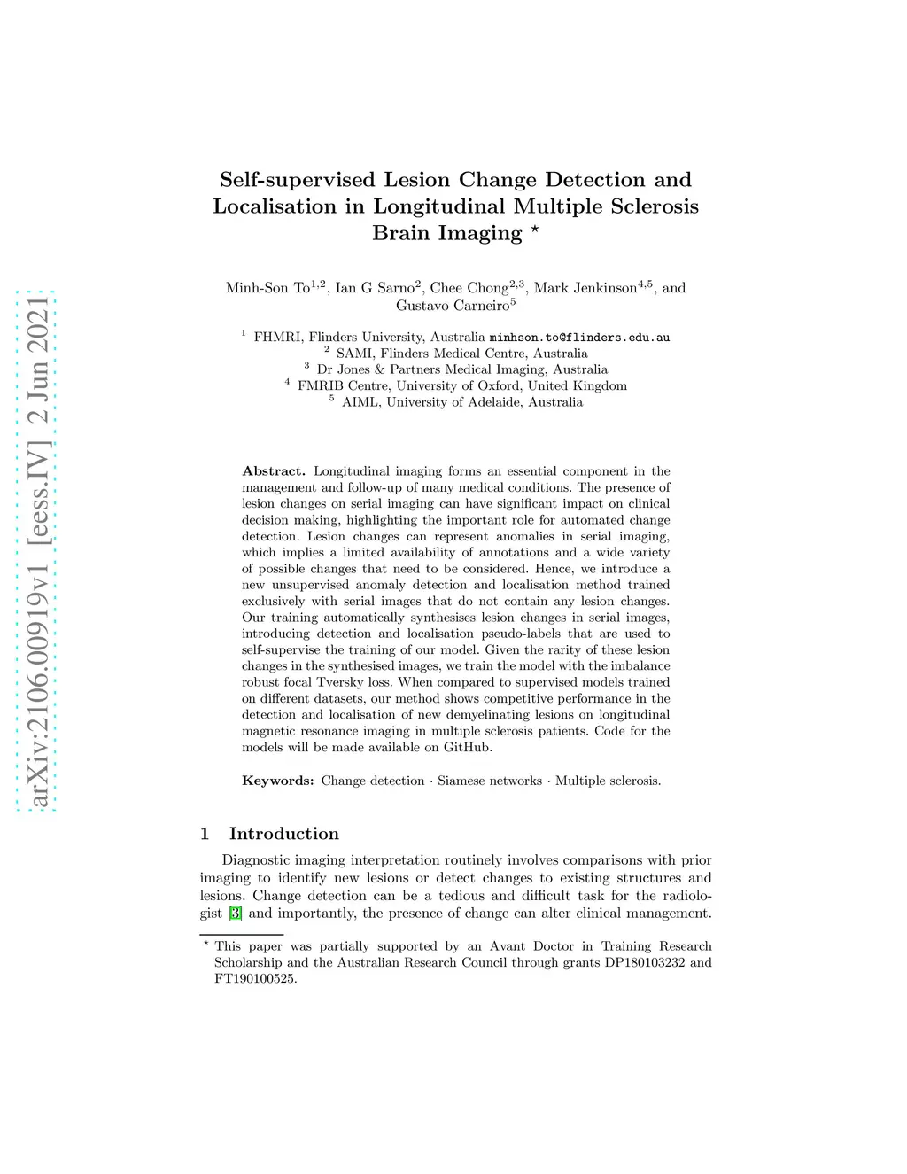 Self-supervised Lesion Change Detection and Localisation in Longitudinal