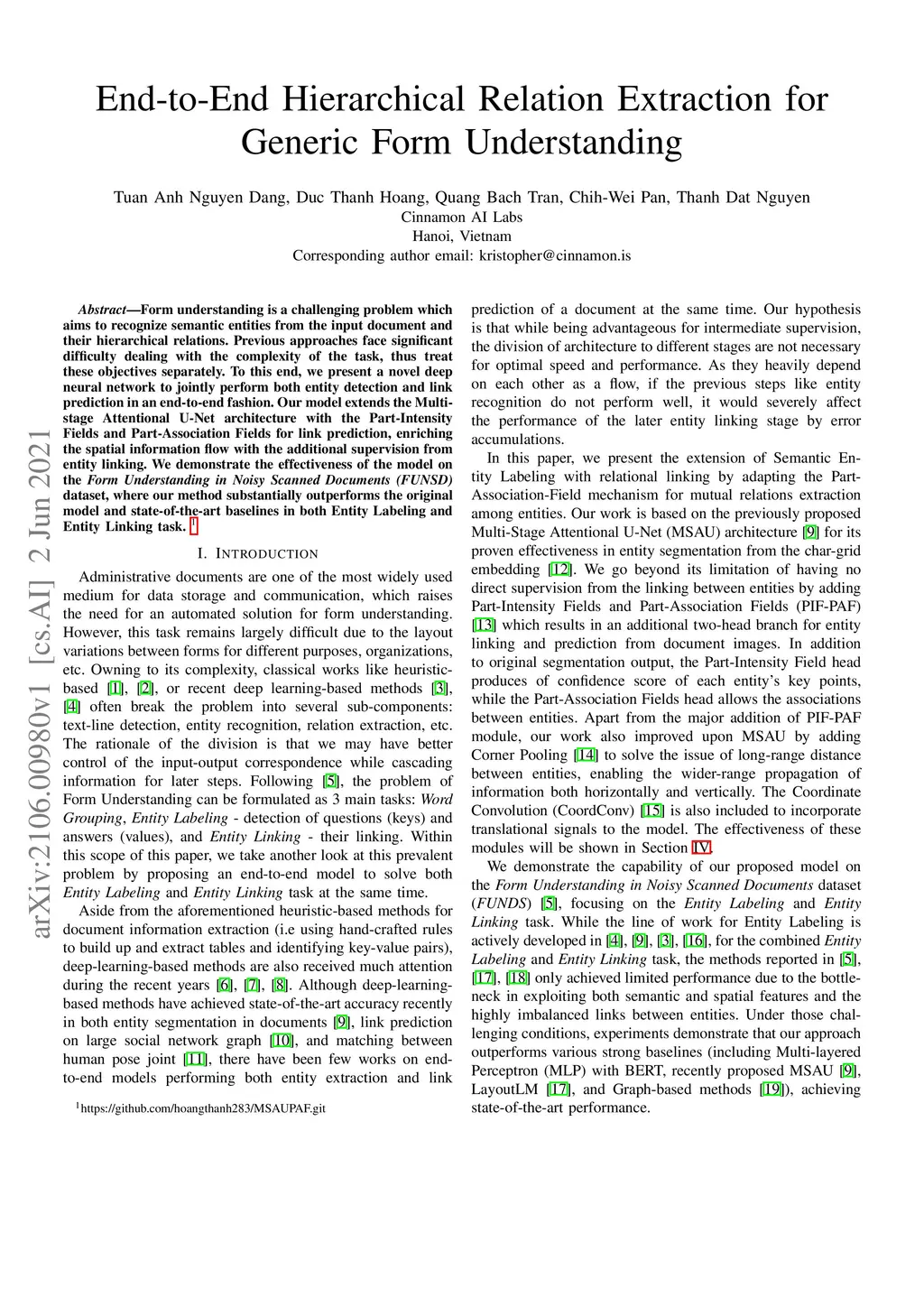 End-to-End Hierarchical Relation Extraction for Generic Form