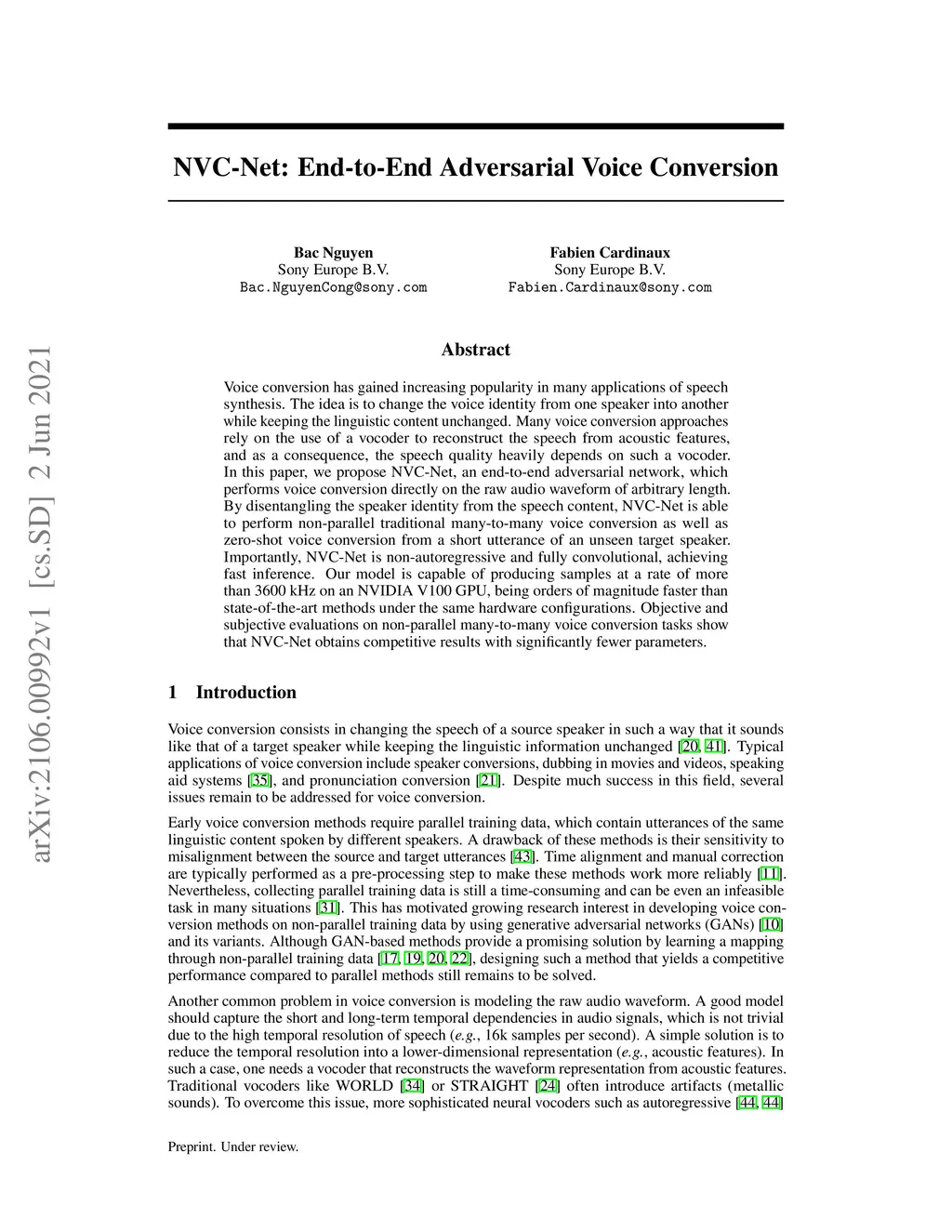 NVC-Net: End-to-End Adversarial Voice Conversion