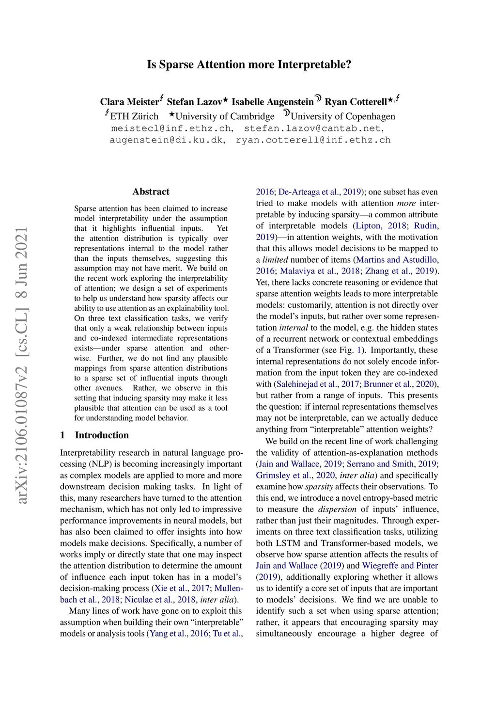 Sparse attention has been claimed to increase model interpretability under the assumption that it highlights influential inputs. Yet the attention distribution is typically over representations internal to the model rather than the inputs themselves, suggesting this assumption may not have merit. We build on the recent work exploring the interpretability of attention; we design a set of experiments to help us understand how sparsity affects our ability to use attention as an explainability tool. On three text classification tasks, we verify that only a weak relationship between inputs and co-indexed intermediate representations exists -- under sparse attention and otherwise. Further, we do not find any plausible mappings from sparse attention distributions to a sparse set of influential inputs through other avenues. Rather, we observe in this setting that inducing sparsity may make it less plausible that attention can be used as a tool for understanding model behavior.