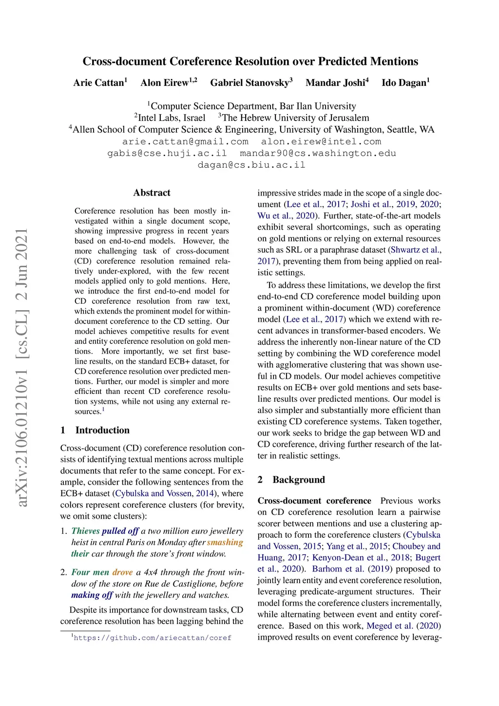Cross-document Coreference Resolution over Predicted Mentions