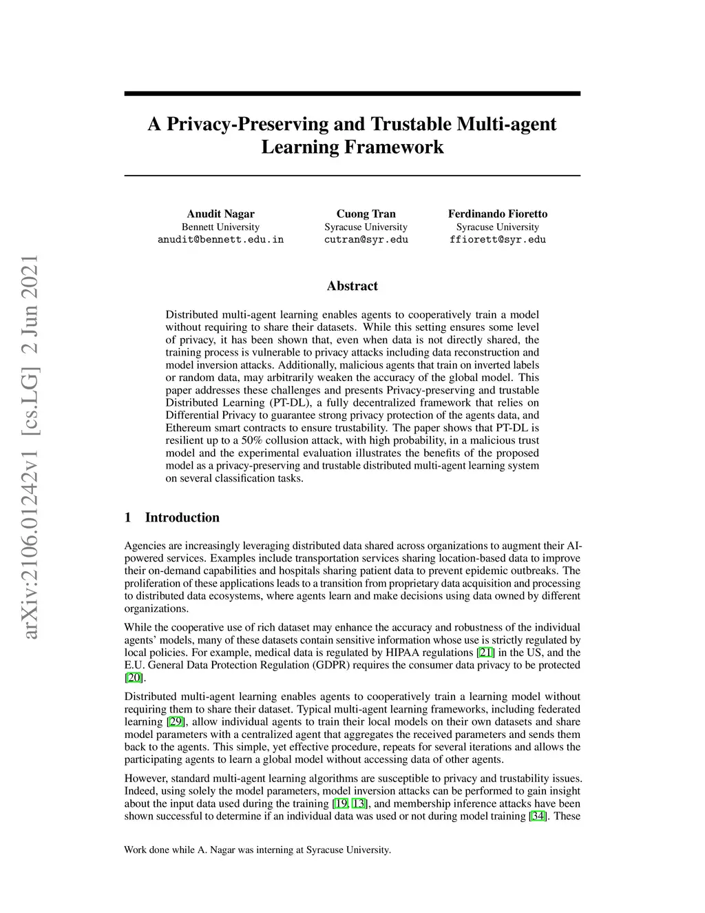 A Privacy-Preserving and Trustable Multi-agent Learning Framework