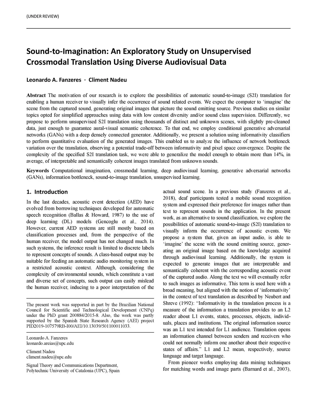 The motivation of our research is to explore the possibilities of automatic sound-to-image (S2I) translation for enabling a human receiver to visually infer the occurrence of sound related events. We expect the computer to ímagine' the scene from the captured sound, generating original images that picture the sound emitting source. Previous studies on similar topics opted for simplified approaches using data with low content diversity and/or sound class supervision. Differently, we propose to perform unsupervised S2I translation using thousands of distinct and unknown scenes, with slightly pre-cleaned data, just enough to guarantee aural-visual semantic coherence. To that end, we employ conditional generative adversarial networks (GANs) with a deep densely connected generator. Additionally, we present a solution using informativity classifiers to perform quantitative evaluation of the generated images. This enabled us to analyze the influence of network bottleneck variation over the translation, observing a potential trade-off between informativity and pixel space convergence. Despite the complexity of the specified S2I translation task, we were able to generalize the model enough to obtain more than 14%, in average, of interpretable and semantically coherent images translated from unknown sounds.