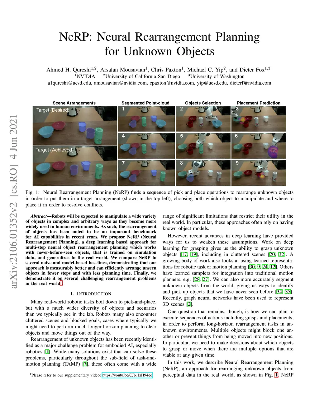 NeRP: Neural Rearrangement Planning for Unknown Objects