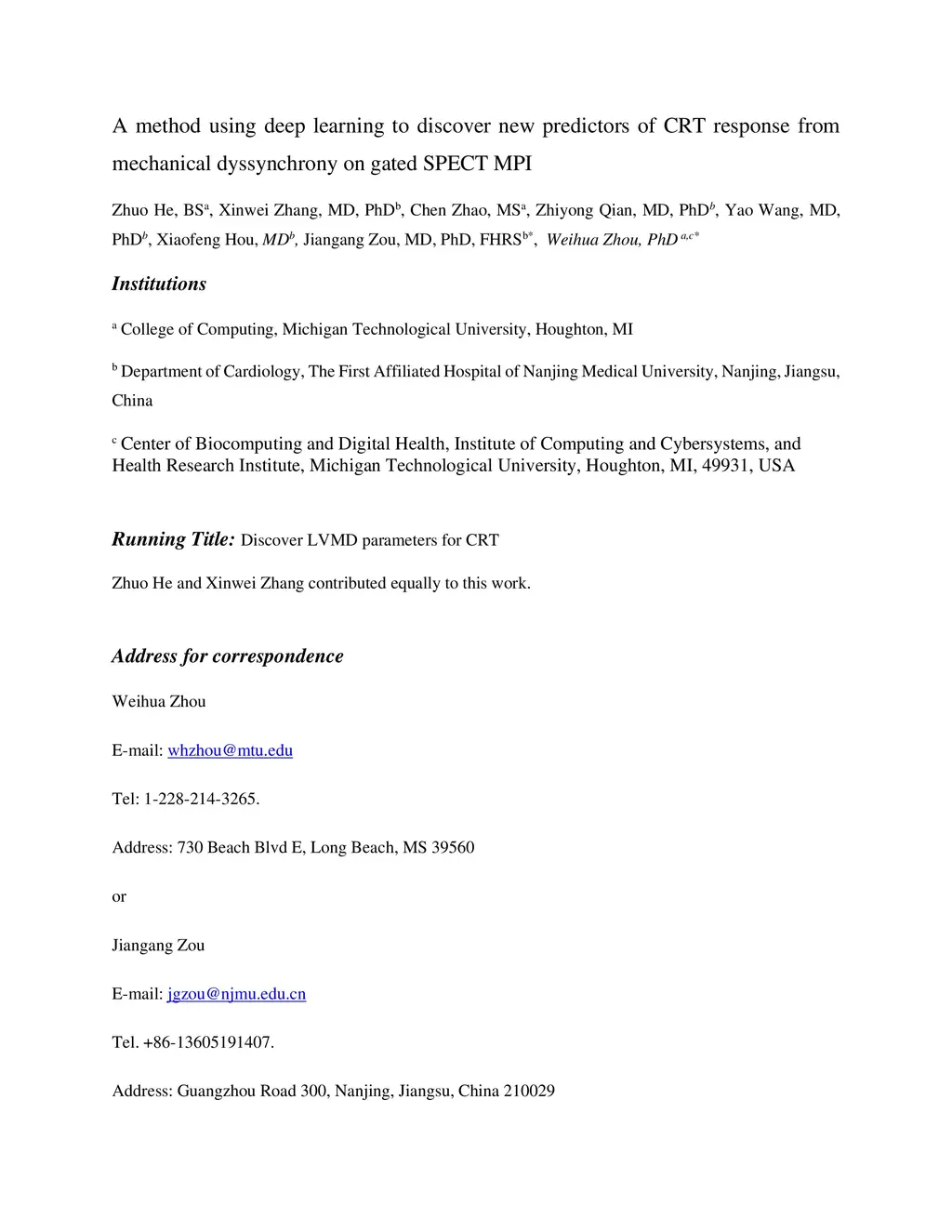 Background. Studies have shown that the conventional left ventricular mechanical dyssynchrony (LVMD) parameters have their own statistical limitations. The purpose of this study is to extract new LVMD parameters from the phase analysis of gated SPECT MPI by deep learning to help CRT patient selection. Methods. One hundred and three patients who underwent rest gated SPECT MPI were enrolled in this study. CRT response was defined as a decrease in left ventricular end-systolic volume (LVESV) >= 15% at 6 +- 1 month follow up. Autoencoder (AE), an unsupervised deep learning method, was trained by the raw LV systolic phase polar maps to extract new LVMD parameters, called AE-based LVMD parameters. Correlation analysis was used to explain the relationships between new parameters with conventional LVMD parameters. Univariate and multivariate analyses were used to establish a multivariate model for predicting CRT response. Results. Complete data were obtained in 102 patients, 44.1% of them were classified as CRT responders. AE-based LVMD parameter was significant in the univariate (OR 1.24, 95% CI 1.07 - 1.44, P = 0.006) and multivariate analyses (OR 1.03, 95% CI 1.01 - 1.06, P = 0.006). Moreover, it had incremental value over PSD (AUC 0.72 vs. 0.63, LH 8.06, P = 0.005) and PBW (AUC 0.72 vs. 0.64, LH 7.87, P = 0.005), combined with significant clinic characteristics, including LVEF and gender. Conclusions. The new LVMD parameters extracted by autoencoder from the baseline gated SPECT MPI has the potential to improve the prediction of CRT response.