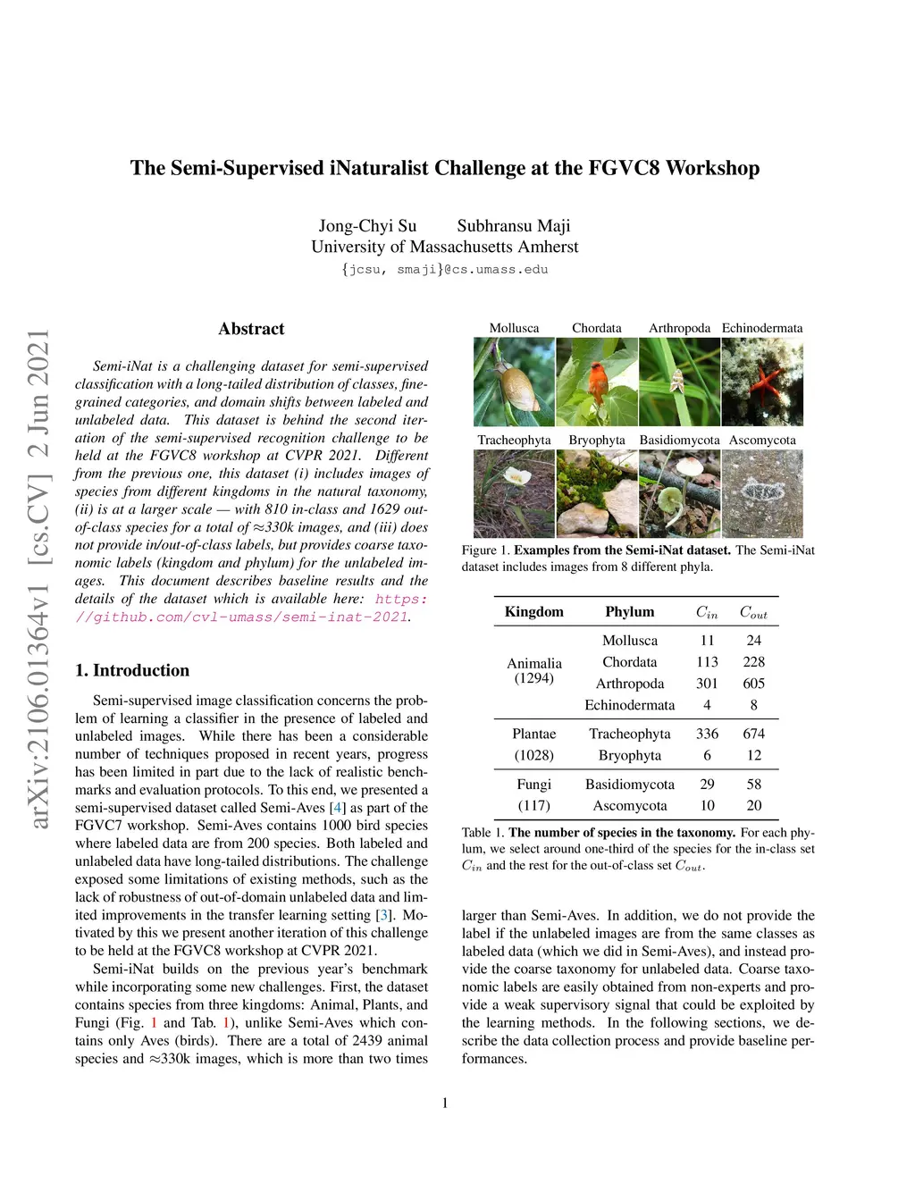 The Semi-Supervised iNaturalist Challenge at the FGVC8 Workshop