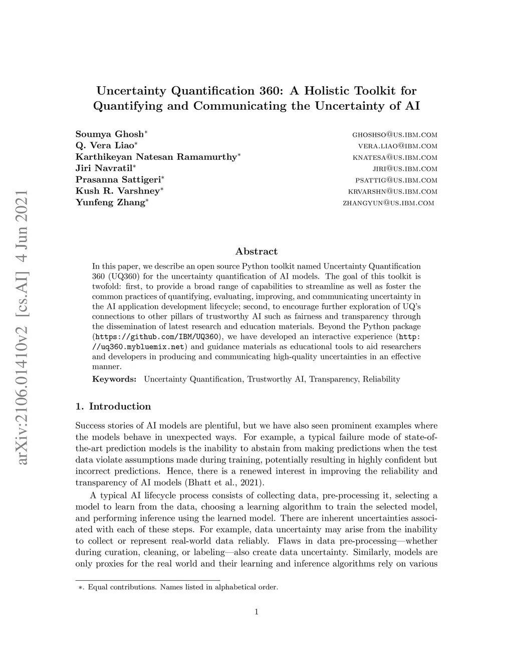 In this paper, we describe an open source Python toolkit named Uncertainty Quantification 360 (UQ360) for the uncertainty quantification of AI models. The goal of this toolkit is twofold: first, to provide a broad range of capabilities to streamline as well as foster the common practices of quantifying, evaluating, improving, and communicating uncertainty in the AI application development lifecycle; second, to encourage further exploration of UQ's connections to other pillars of trustworthy AI such as fairness and transparency through the dissemination of latest research and education materials. Beyond the Python package (\url{https://github.com/IBM/UQ360}), we have developed an interactive experience (\url{http://uq360.mybluemix.net}) and guidance materials as educational tools to aid researchers and developers in producing and communicating high-quality uncertainties in an effective manner.
