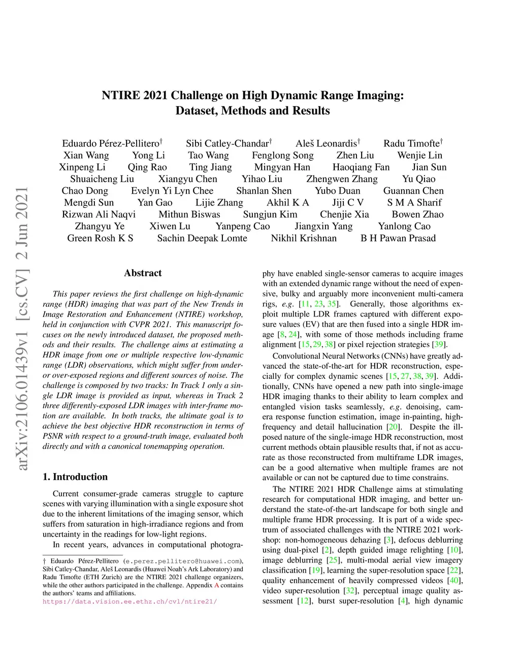 NTIRE 2021 Challenge on High Dynamic Range Imaging: Dataset, Methods and