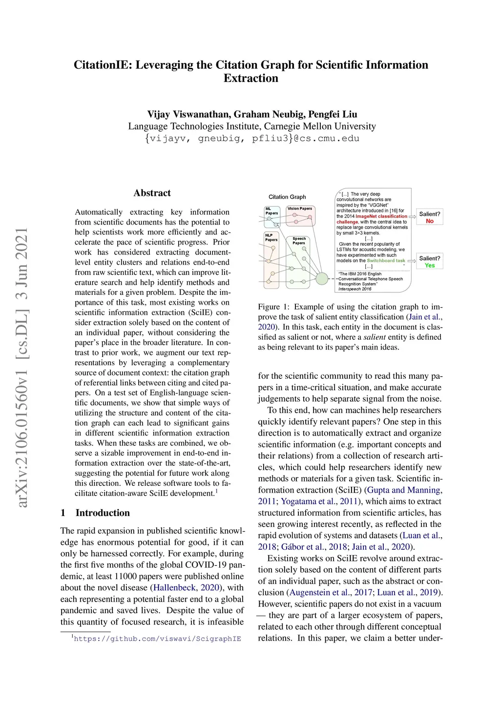 CitationIE: Leveraging the Citation Graph for Scientific Information