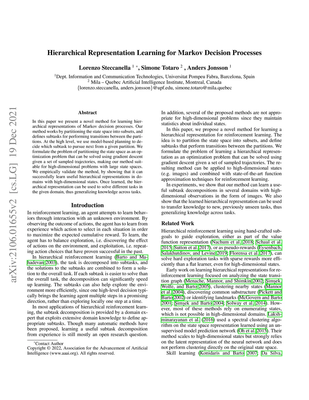 In this paper we present a novel method for learning hierarchical representations of Markov decision processes. Our method works by partitioning the state space into subsets, and defines subtasks for performing transitions between the partitions. We formulate the problem of partitioning the state space as an optimization problem that can be solved using gradient descent given a set of sampled trajectories, making our method suitable for high-dimensional problems with large state spaces. We empirically validate the method, by showing that it can successfully learn a useful hierarchical representation in a navigation domain. Once learned, the hierarchical representation can be used to solve different tasks in the given domain, thus generalizing knowledge across tasks.