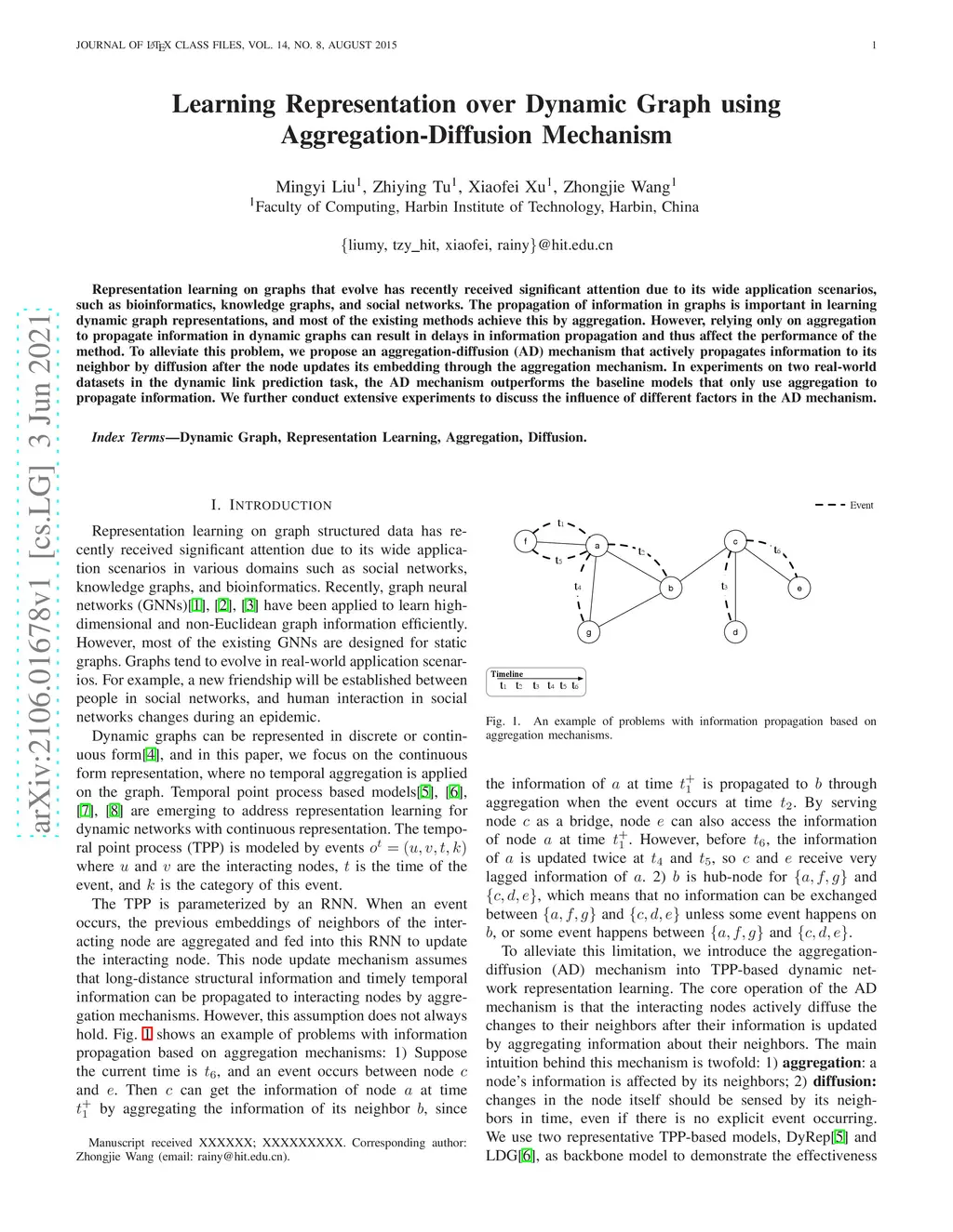 Learning Representation over Dynamic Graph using Aggregation-Diffusion