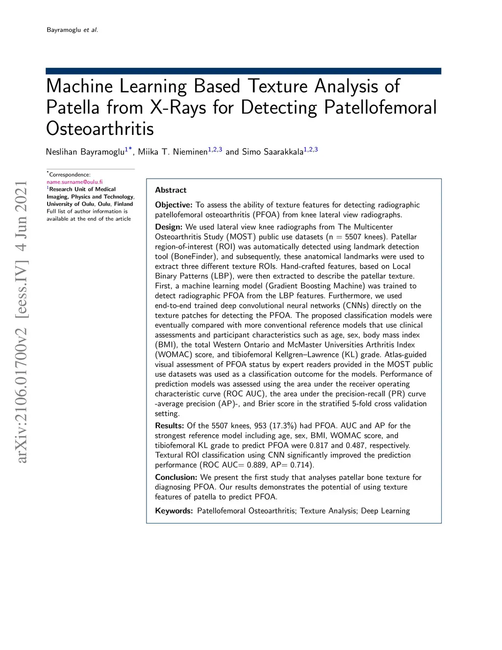 Machine Learning Based Texture Analysis of Patella from X-Rays for