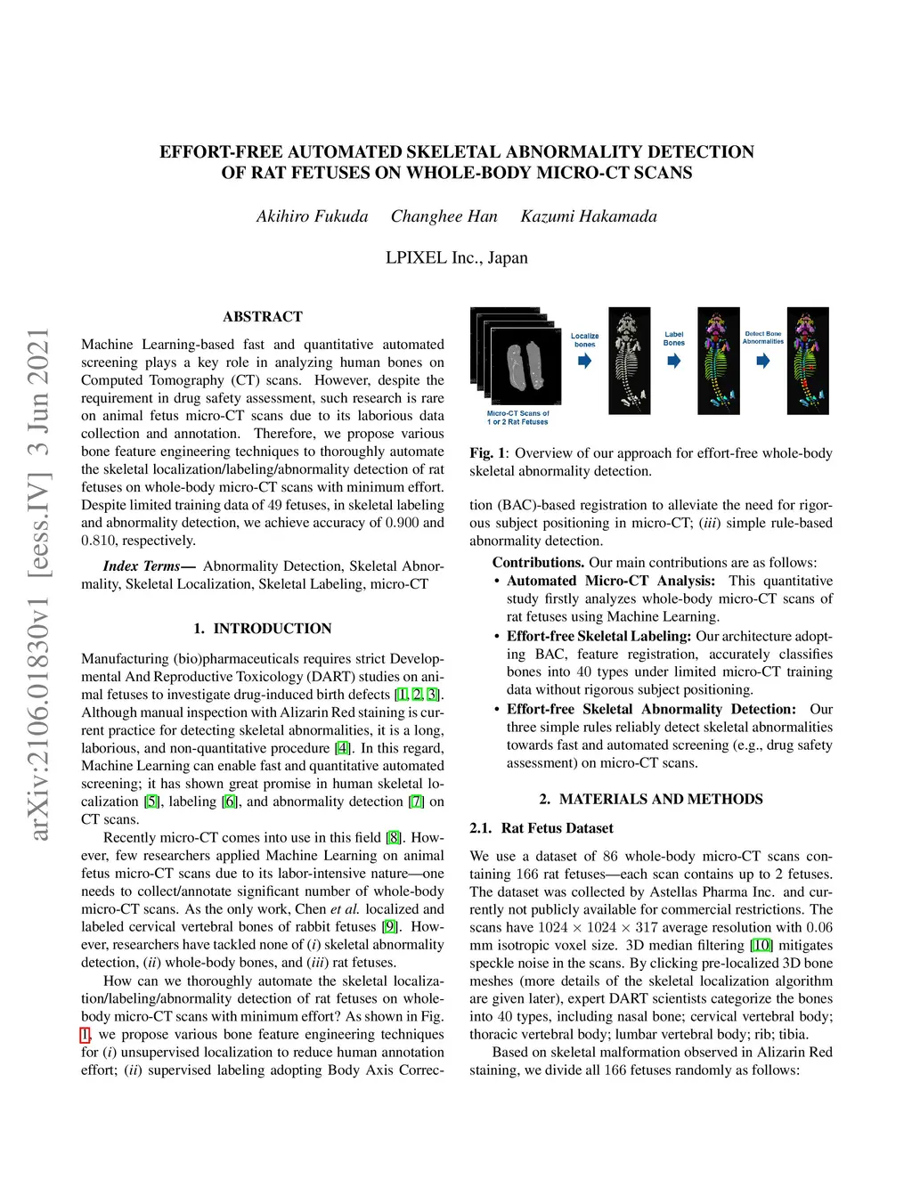 Effort-free Automated Skeletal Abnormality Detection of Rat Fetuses on