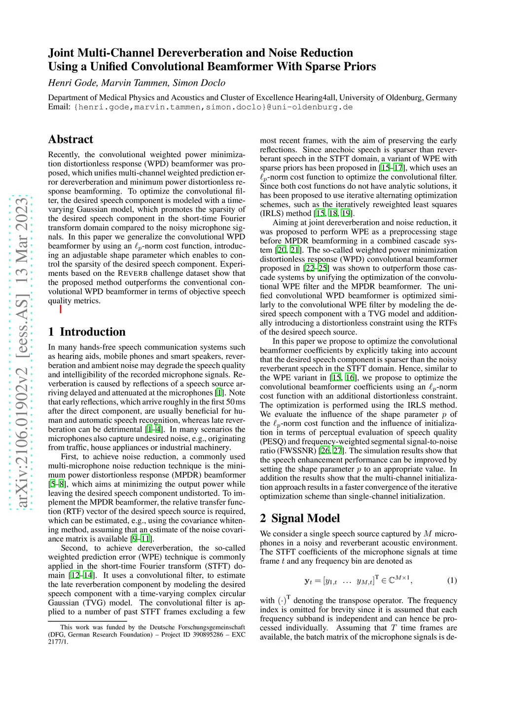 Convolutional Beamformer With Sparse Priors