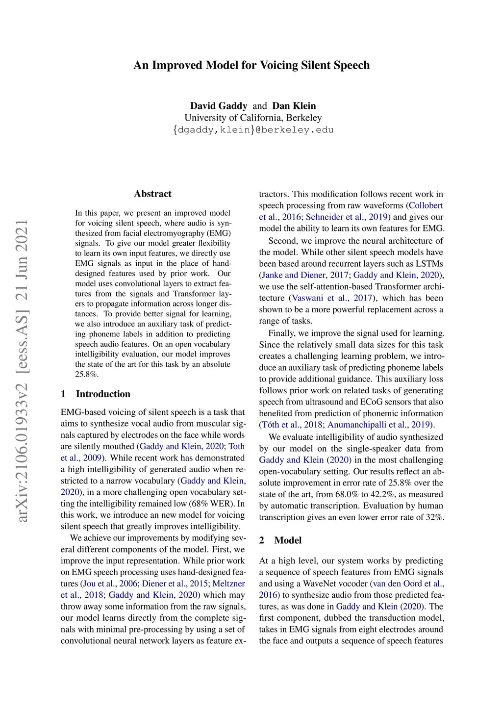 An Improved Model for Voicing Silent Speech