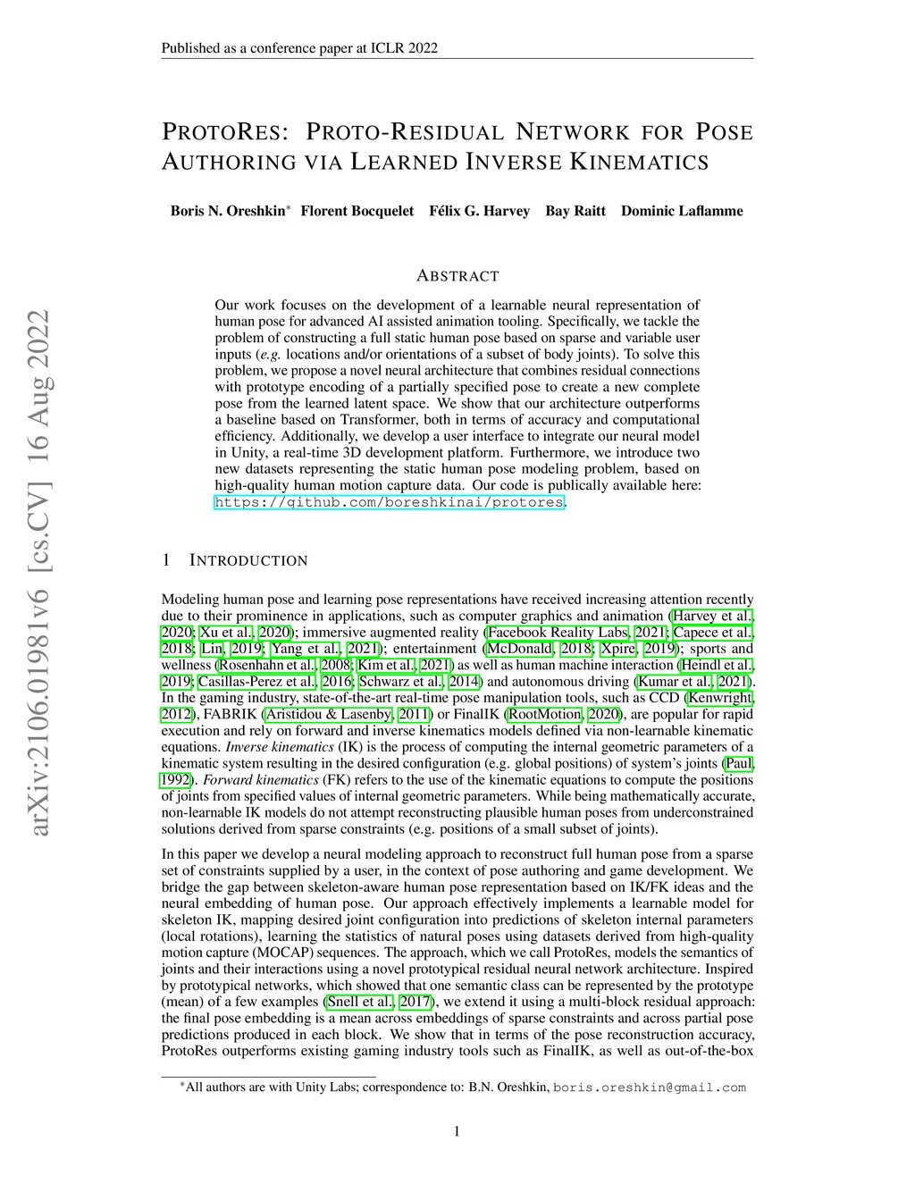 ProtoRes: Proto-Residual Network for Pose Authoring via Learned Inverse
