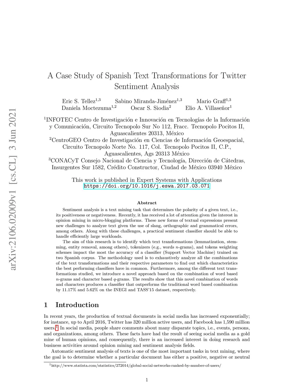 Sentiment analysis is a text mining task that determines the polarity of a given text, i.e., its positiveness or negativeness. Recently, it has received a lot of attention given the interest in opinion mining in micro-blogging platforms. These new forms of textual expressions present new challenges to analyze text given the use of slang, orthographic and grammatical errors, among others. Along with these challenges, a practical sentiment classifier should be able to handle efficiently large workloads. The aim of this research is to identify which text transformations (lemmatization, stemming, entity removal, among others), tokenizers (e.g., words -grams), and tokens weighting schemes impact the most the accuracy of a classifier (Support Vector Machine) trained on two Spanish corpus. The methodology used is to exhaustively analyze all the combinations of the text transformations and their respective parameters to find out which characteristics the best performing classifiers have in common. Furthermore, among the different text transformations studied, we introduce a novel approach based on the combination of word based -grams and character based -grams. The results show that this novel combination of words and characters produces a classifier that outperforms the traditional word based combination by and on the INEGI and TASS'15 dataset, respectively.