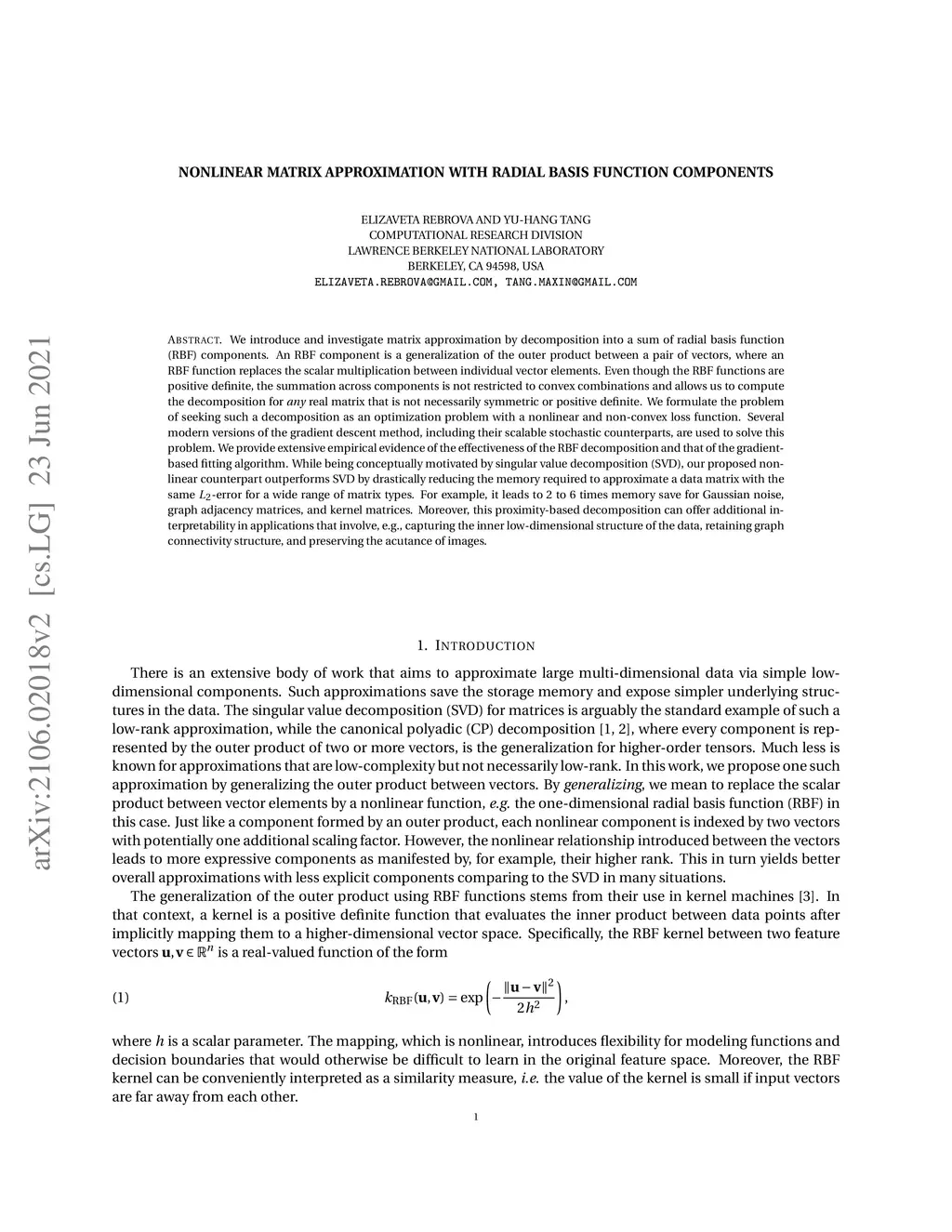 Nonlinear Matrix Approximation with Radial Basis Function Components