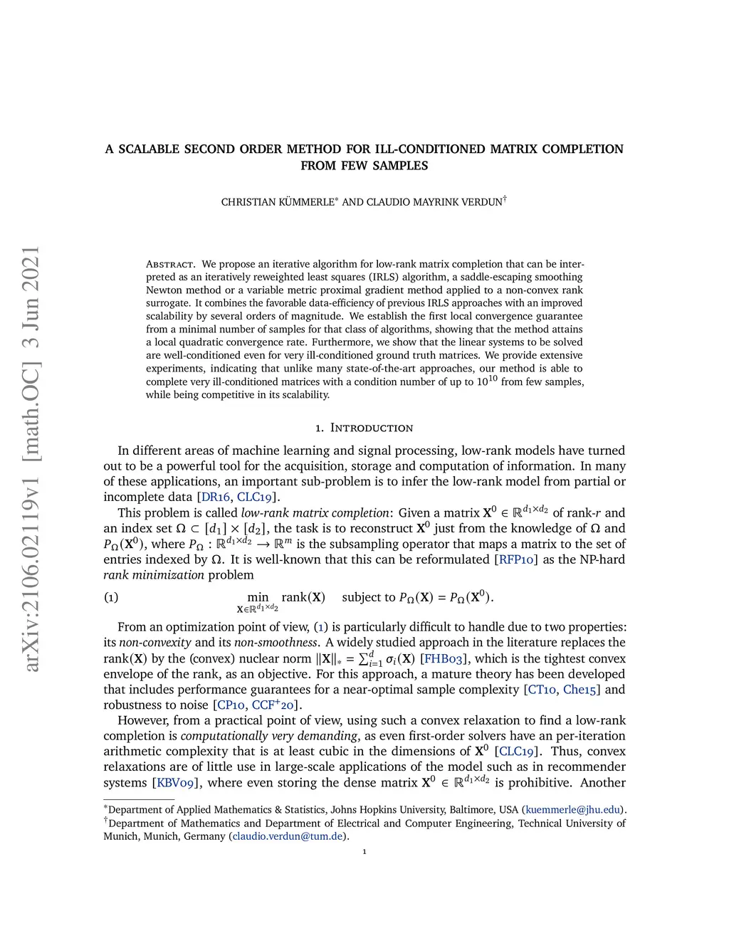 We propose an iterative algorithm for low-rank matrix completion that can be interpreted as an iteratively reweighted least squares (IRLS) algorithm, a saddle-escaping smoothing Newton method or a variable metric proximal gradient method applied to a non-convex rank surrogate. It combines the favorable data-efficiency of previous IRLS approaches with an improved scalability by several orders of magnitude. We establish the first local convergence guarantee from a minimal number of samples for that class of algorithms, showing that the method attains a local quadratic convergence rate. Furthermore, we show that the linear systems to be solved are well-conditioned even for very ill-conditioned ground truth matrices. We provide extensive experiments, indicating that unlike many state-of-the-art approaches, our method is able to complete very ill-conditioned matrices with a condition number of up to from few samples, while being competitive in its scalability.