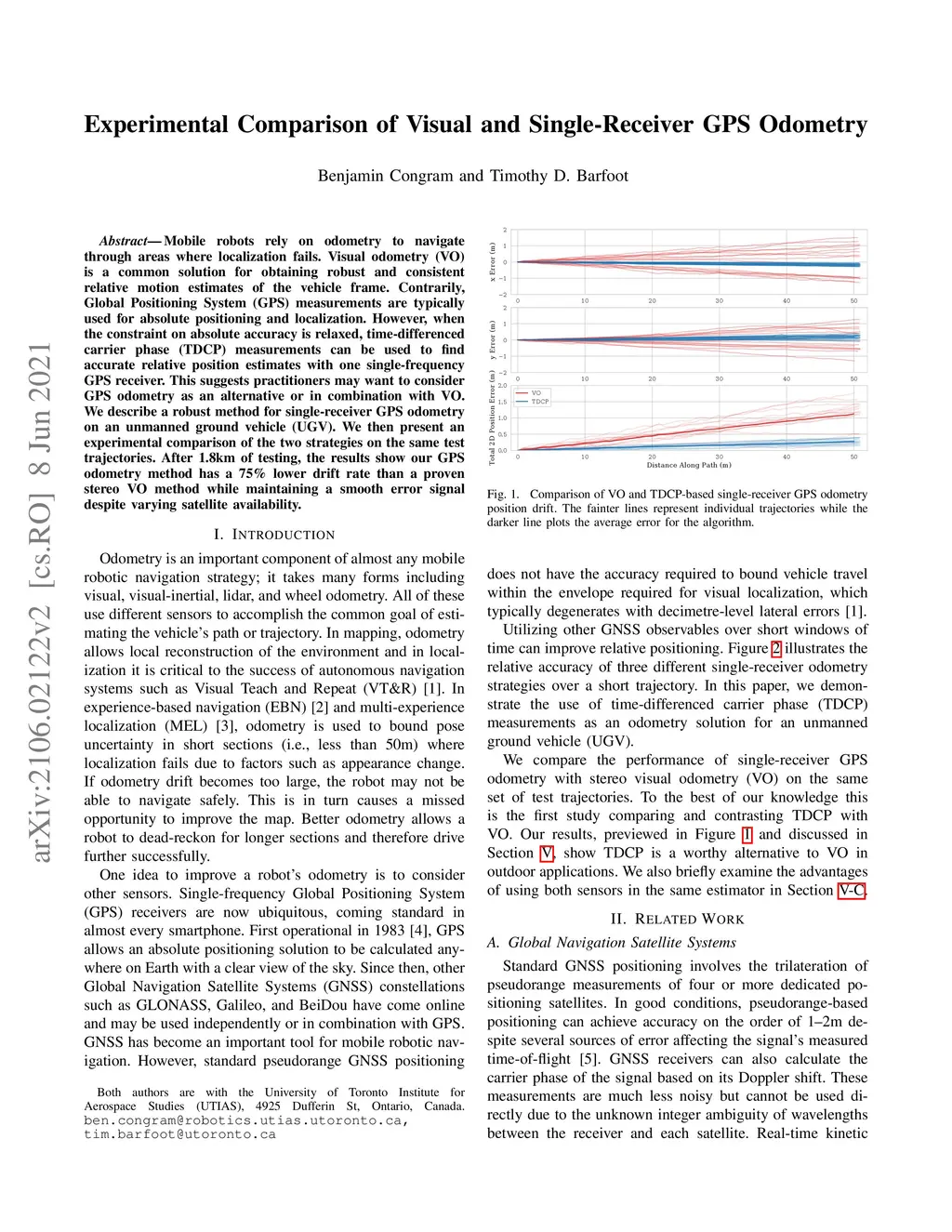 Experimental Comparison of Visual and Single-Receiver GPS Odometry