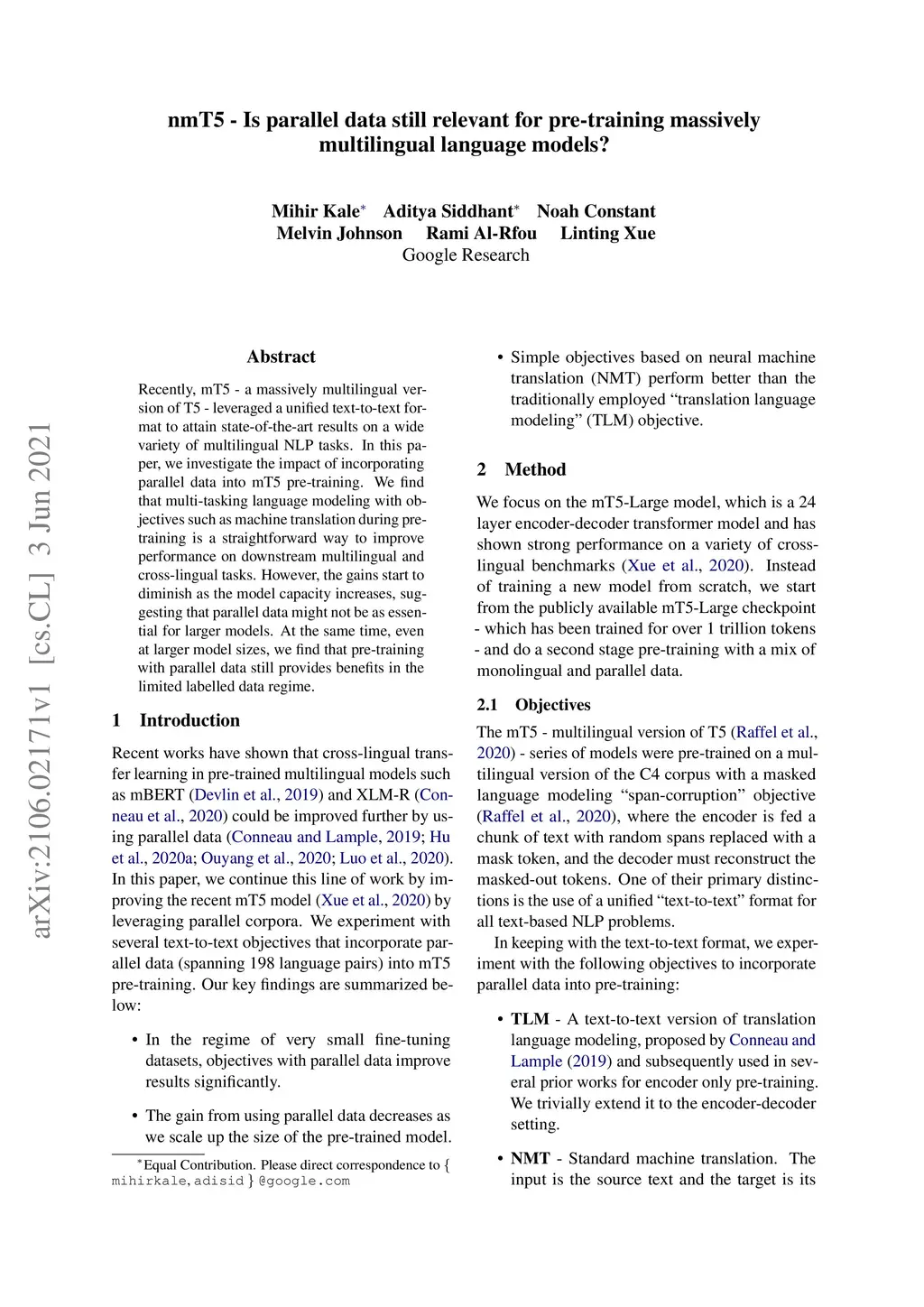 nmT5 -- Is parallel data still relevant for pre-training massively