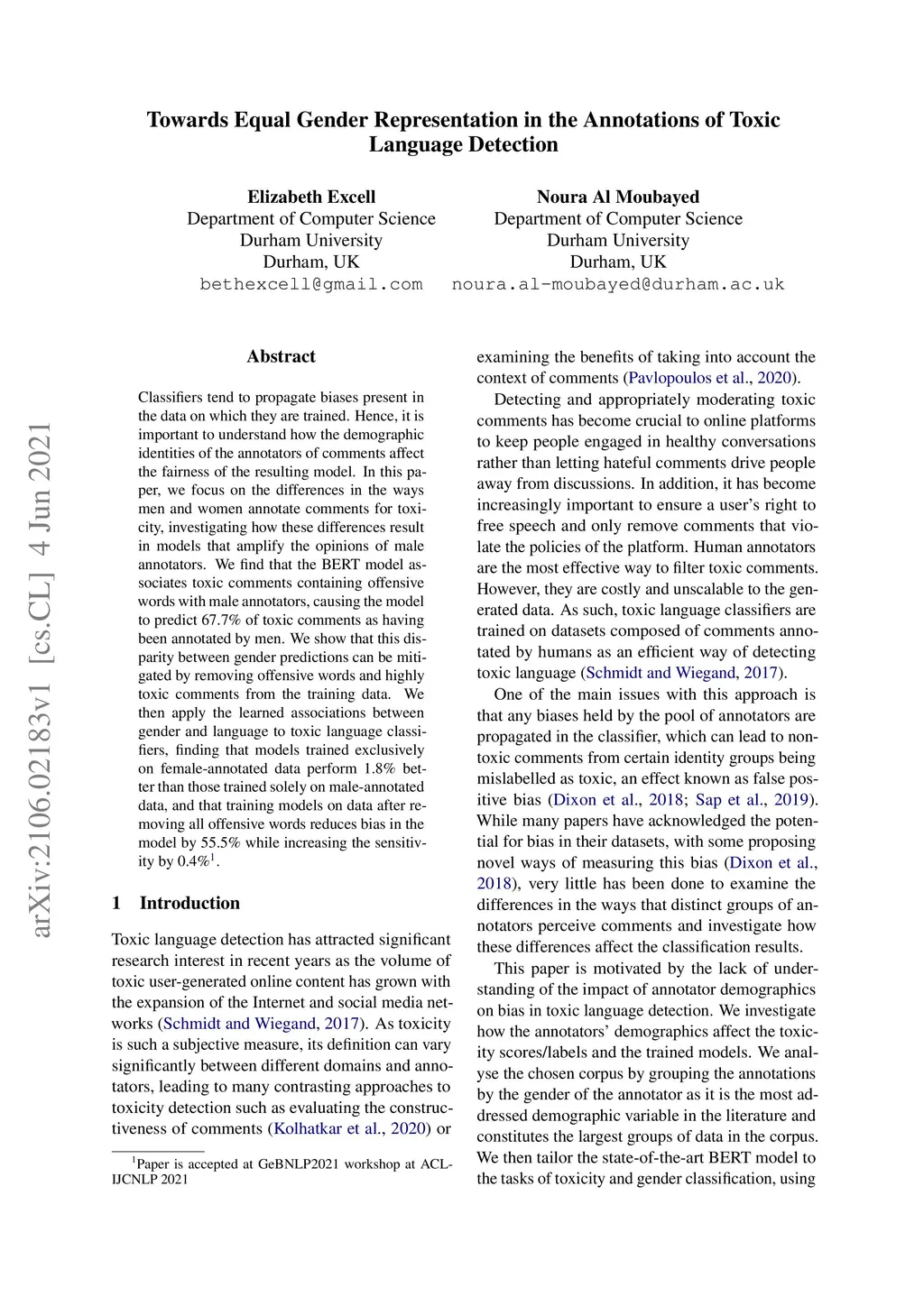 Classifiers tend to propagate biases present in the data on which they are trained. Hence, it is important to understand how the demographic identities of the annotators of comments affect the fairness of the resulting model. In this paper, we focus on the differences in the ways men and women annotate comments for toxicity, investigating how these differences result in models that amplify the opinions of male annotators. We find that the BERT model as-sociates toxic comments containing offensive words with male annotators, causing the model to predict 67.7% of toxic comments as having been annotated by men. We show that this disparity between gender predictions can be mitigated by removing offensive words and highly toxic comments from the training data. We then apply the learned associations between gender and language to toxic language classifiers, finding that models trained exclusively on female-annotated data perform 1.8% better than those trained solely on male-annotated data and that training models on data after removing all offensive words reduces bias in the model by 55.5% while increasing the sensitivity by 0.4%.