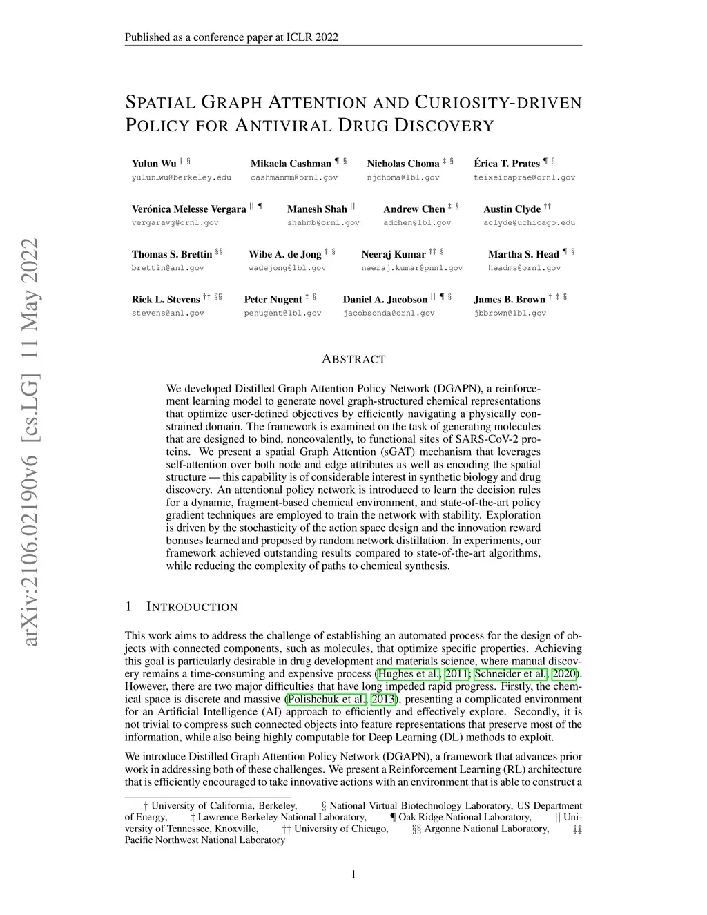 Spatial Graph Attention and Curiosity-driven Policy for Antiviral Drug