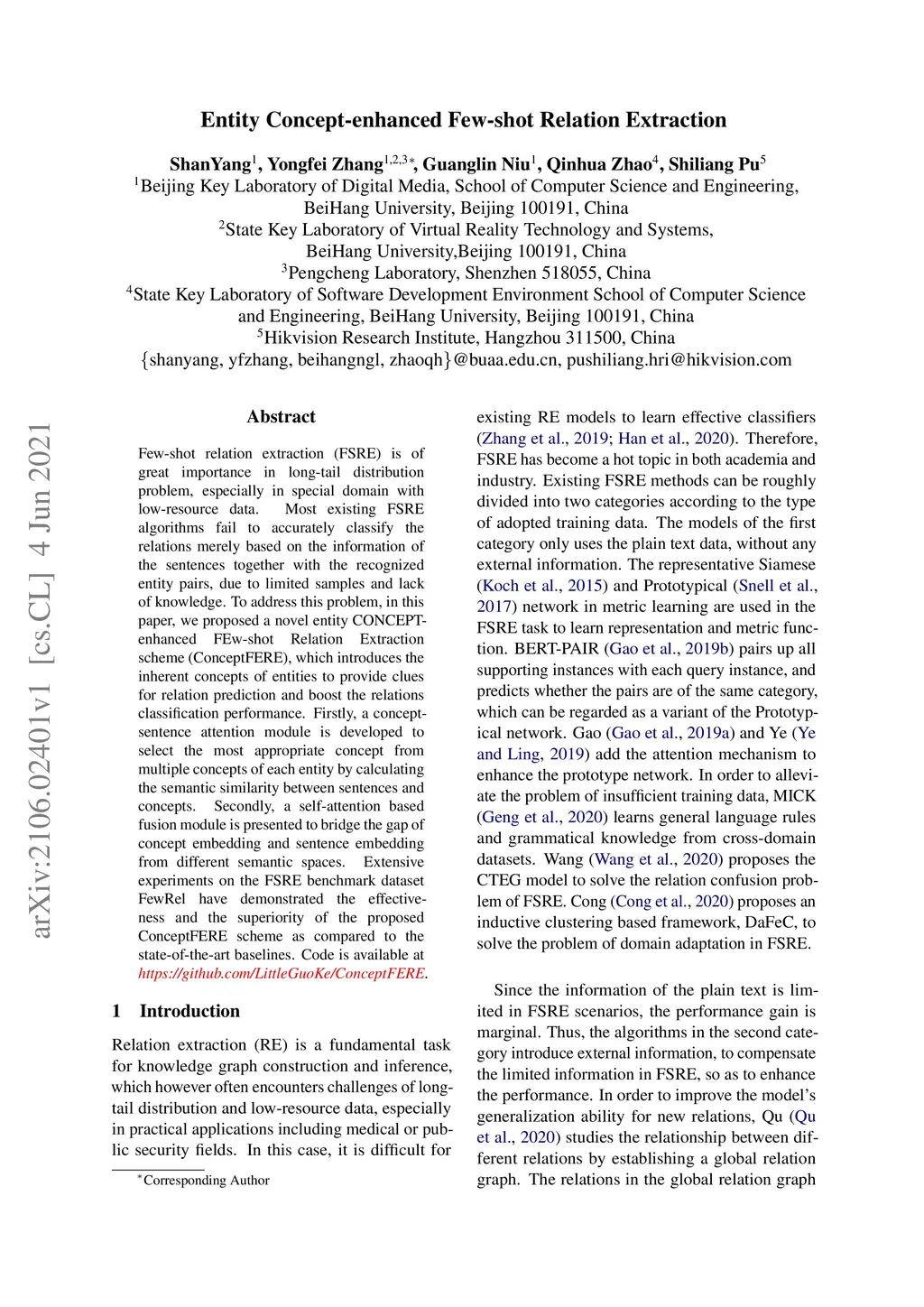 Few-shot relation extraction (FSRE) is of great importance in long-tail distribution problem, especially in special domain with low-resource data. Most existing FSRE algorithms fail to accurately classify the relations merely based on the information of the sentences together with the recognized entity pairs, due to limited samples and lack of knowledge. To address this problem, in this paper, we proposed a novel entity CONCEPT-enhanced FEw-shot Relation Extraction scheme (ConceptFERE), which introduces the inherent concepts of entities to provide clues for relation prediction and boost the relations classification performance. Firstly, a concept-sentence attention module is developed to select the most appropriate concept from multiple concepts of each entity by calculating the semantic similarity between sentences and concepts. Secondly, a self-attention based fusion module is presented to bridge the gap of concept embedding and sentence embedding from different semantic spaces. Extensive experiments on the FSRE benchmark dataset FewRel have demonstrated the effectiveness and the superiority of the proposed ConceptFERE scheme as compared to the state-of-the-art baselines. Code is available at https://github.com/LittleGuoKe/ConceptFERE.