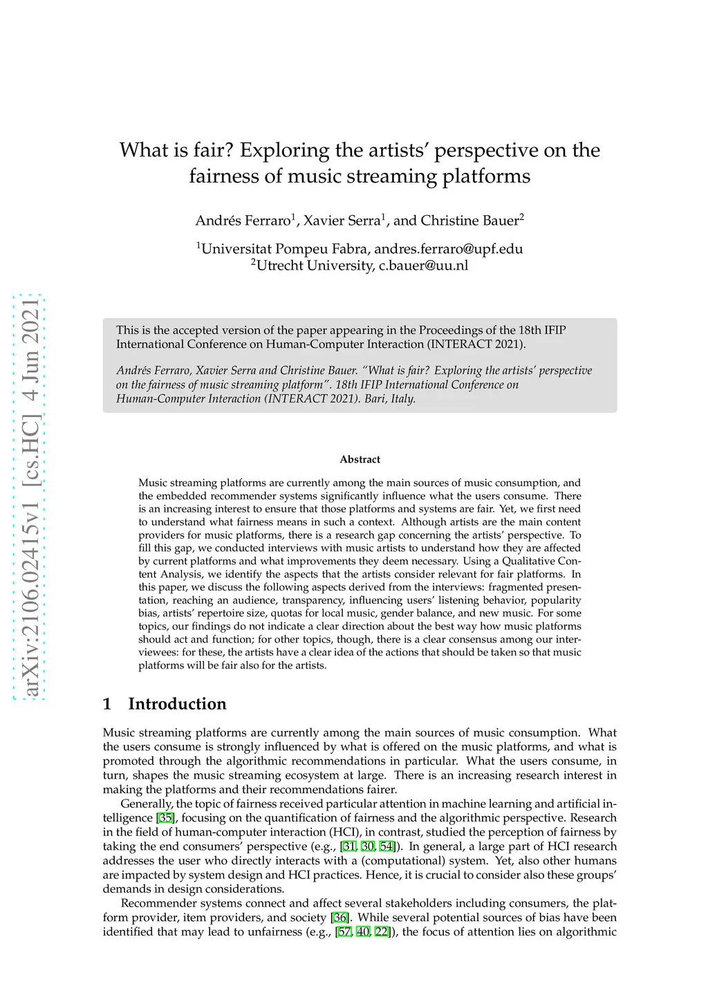 Music streaming platforms are currently among the main sources of music consumption, and the embedded recommender systems significantly influence what the users consume. There is an increasing interest to ensure that those platforms and systems are fair. Yet, we first need to understand what fairness means in such a context. Although artists are the main content providers for music platforms, there is a research gap concerning the artists' perspective. To fill this gap, we conducted interviews with music artists to understand how they are affected by current platforms and what improvements they deem necessary. Using a Qualitative Content Analysis, we identify the aspects that the artists consider relevant for fair platforms. In this paper, we discuss the following aspects derived from the interviews: fragmented presentation, reaching an audience, transparency, influencing users' listening behavior, popularity bias, artists' repertoire size, quotas for local music, gender balance, and new music. For some topics, our findings do not indicate a clear direction about the best way how music platforms should act and function; for other topics, though, there is a clear consensus among our interviewees: for these, the artists have a clear idea of the actions that should be taken so that music platforms will be fair also for the artists.