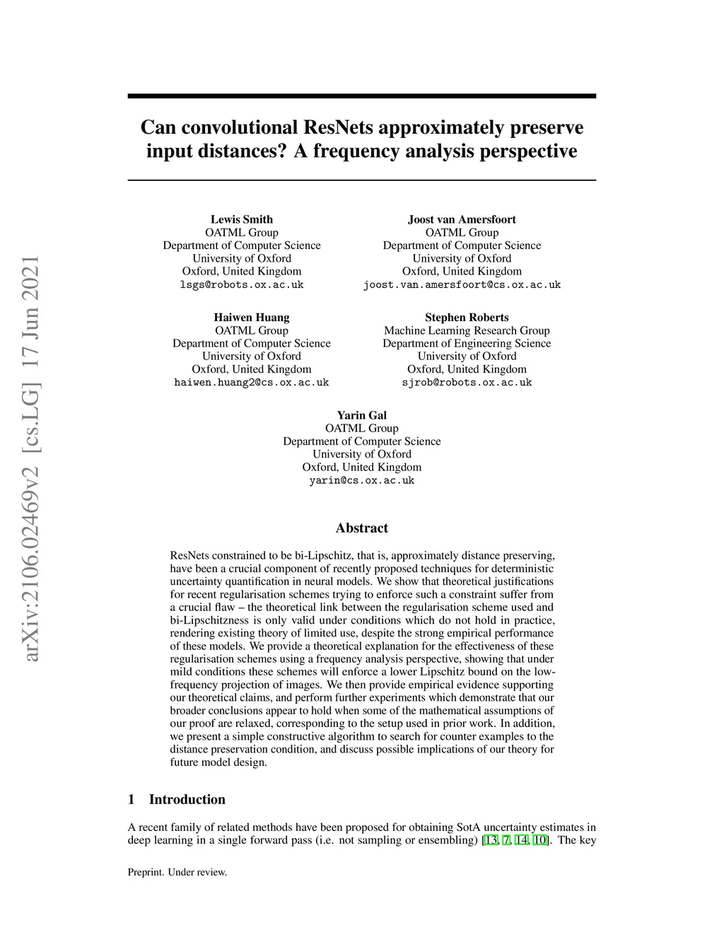 ResNets constrained to be bi-Lipschitz, that is, approximately distance preserving, have been a crucial component of recently proposed techniques for deterministic uncertainty quantification in neural models. We show that theoretical justifications for recent regularisation schemes trying to enforce such a constraint suffer from a crucial flaw -- the theoretical link between the regularisation scheme used and bi-Lipschitzness is only valid under conditions which do not hold in practice, rendering existing theory of limited use, despite the strong empirical performance of these models. We provide a theoretical explanation for the effectiveness of these regularisation schemes using a frequency analysis perspective, showing that under mild conditions these schemes will enforce a lower Lipschitz bound on the low-frequency projection of images. We then provide empirical evidence supporting our theoretical claims, and perform further experiments which demonstrate that our broader conclusions appear to hold when some of the mathematical assumptions of our proof are relaxed, corresponding to the setup used in prior work. In addition, we present a simple constructive algorithm to search for counter examples to the distance preservation condition, and discuss possible implications of our theory for future model design.