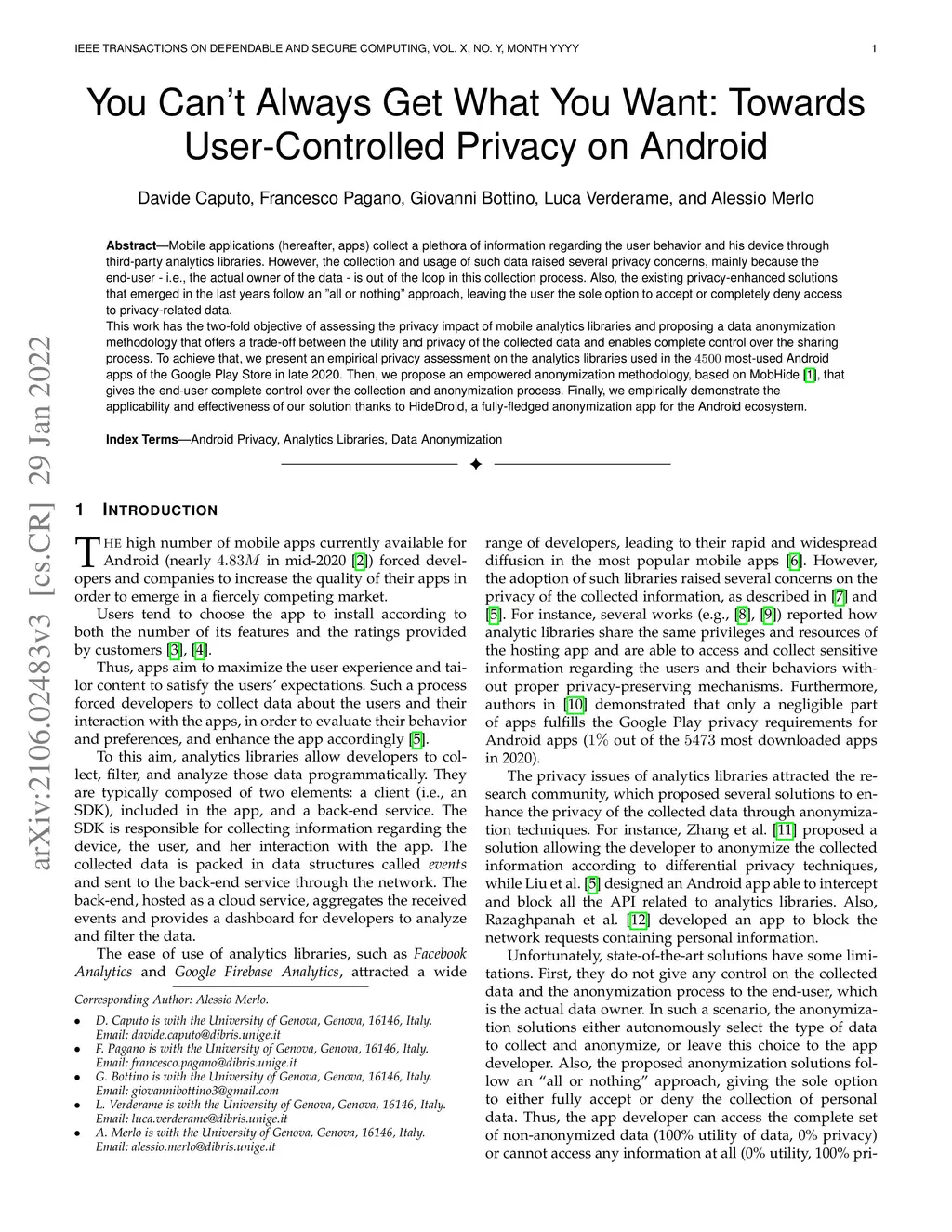 Mobile applications (hereafter, apps) collect a plethora of information regarding the user behavior and his device through third-party analytics libraries. However, the collection and usage of such data raised several privacy concerns, mainly because the end-user - i.e., the actual owner of the data - is out of the loop in this collection process. Also, the existing privacy-enhanced solutions that emerged in the last years follow an "all or nothing" approach, leaving the user the sole option to accept or completely deny the access to privacy-related data. This work has the two-fold objective of assessing the privacy implications on the usage of analytics libraries in mobile apps and proposing a data anonymization methodology that enables a trade-off between the utility and privacy of the collected data and gives the user complete control over the sharing process. To achieve that, we present an empirical privacy assessment on the analytics libraries contained in the 4500 most-used Android apps of the Google Play Store between November 2020 and January 2021. Then, we propose an empowered anonymization methodology, based on MobHide, that gives the end-user complete control over the collection and anonymization process. Finally, we empirically demonstrate the applicability and effectiveness of such anonymization methodology thanks to HideDroid, a fully-fledged anonymization app for the Android ecosystem.