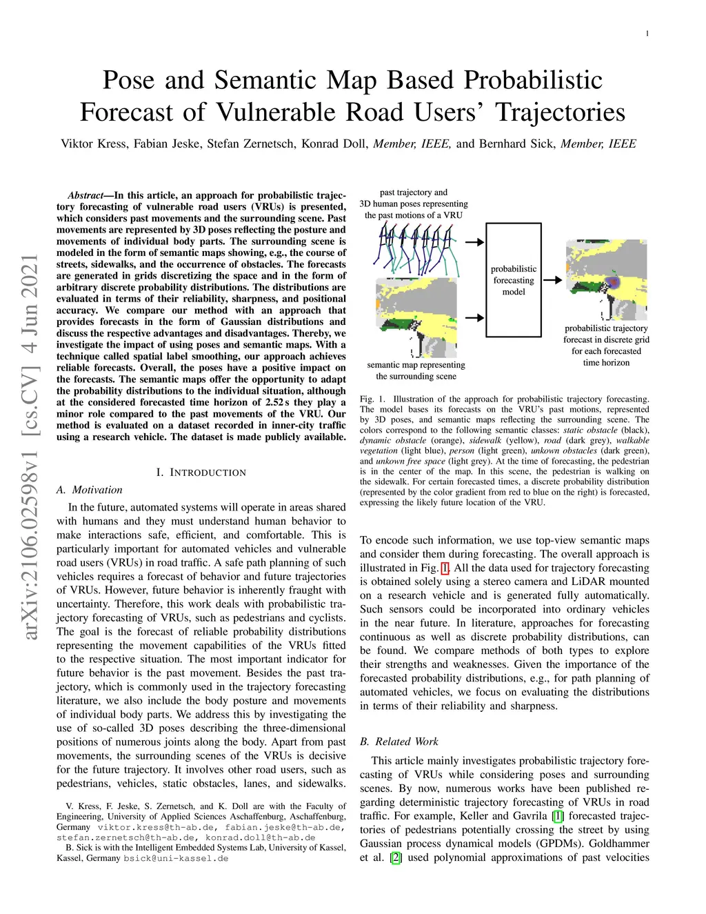 Pose and Semantic Map Based Probabilistic Forecast of Vulnerable Road