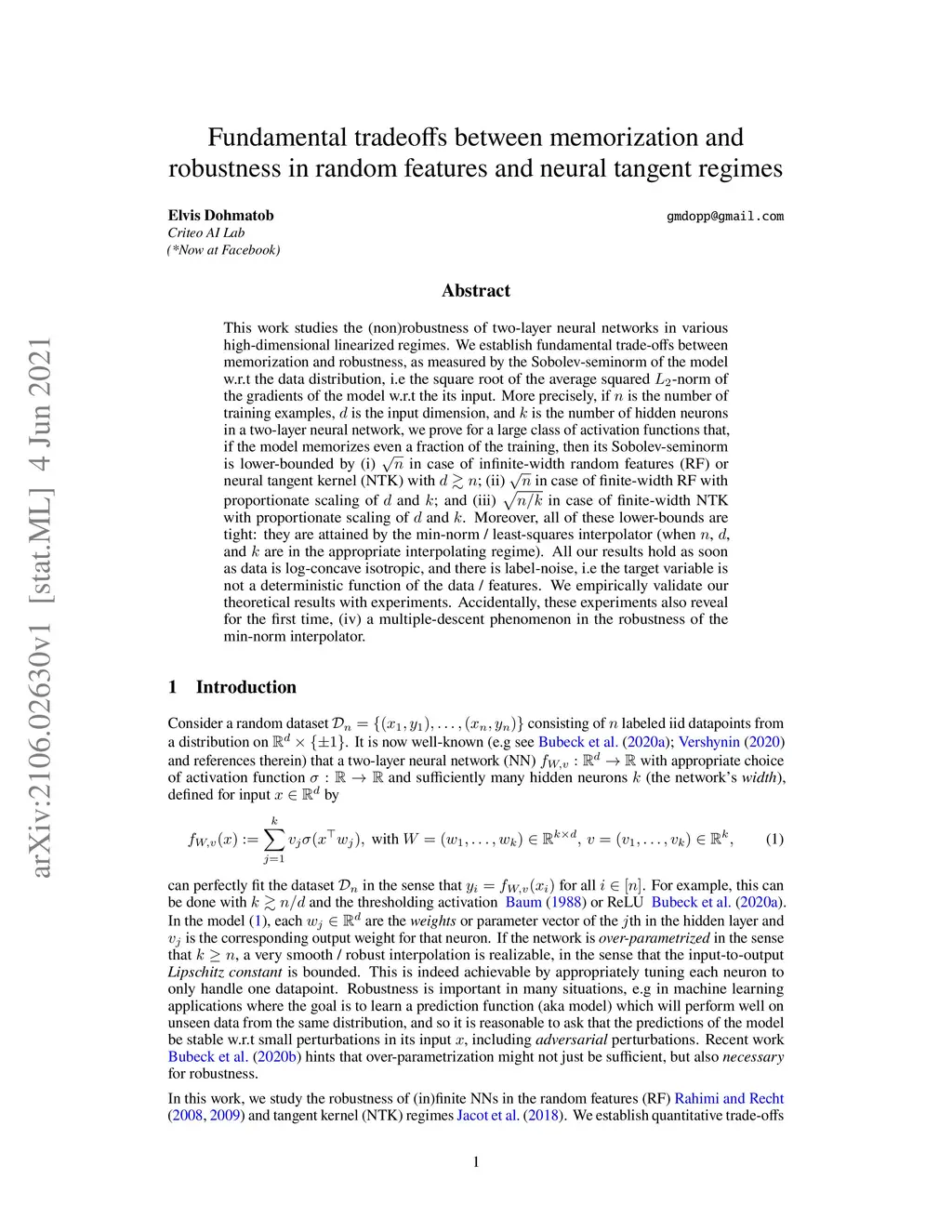 Fundamental tradeoffs between memorization and robustness in random