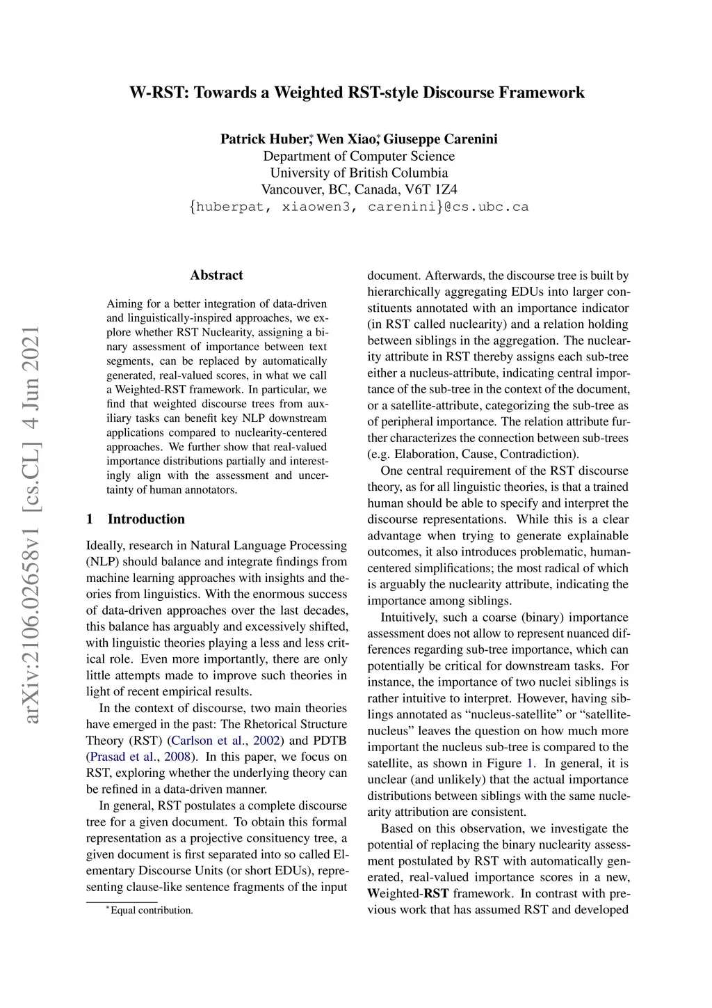 W-RST: Towards a Weighted RST-style Discourse Framework