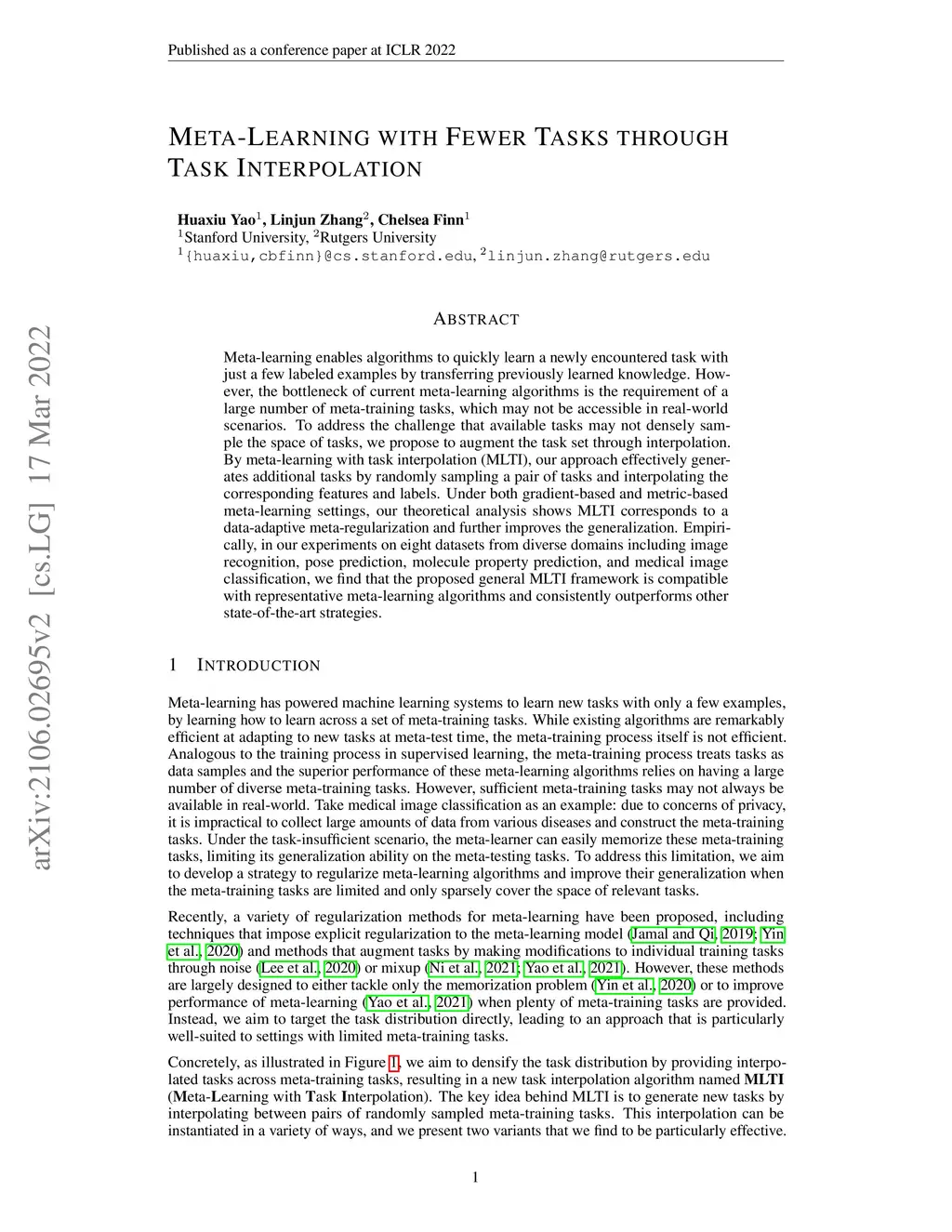 Meta-Learning with Fewer Tasks through Task Interpolation