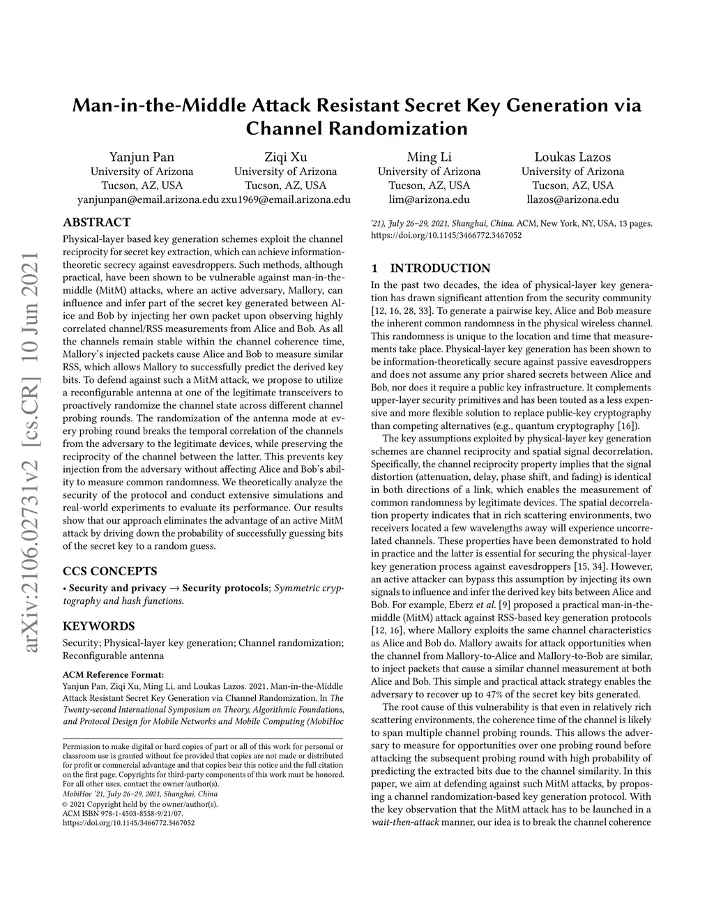 Man-in-the-Middle Attack Resistant Secret Key Generation via Channel