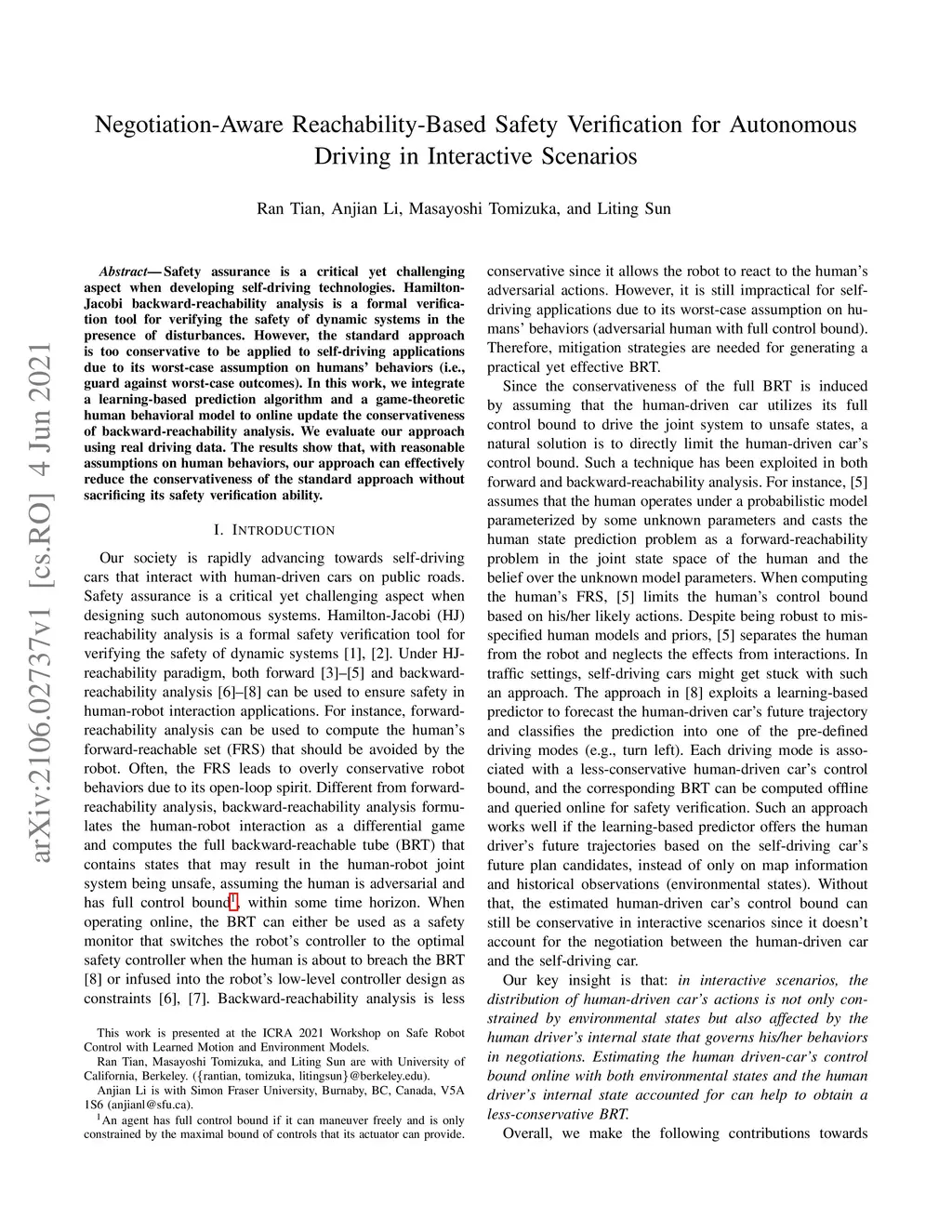 Safety assurance is a critical yet challenging aspect when developing self-driving technologies. Hamilton-Jacobi backward-reachability analysis is a formal verification tool for verifying the safety of dynamic systems in the presence of disturbances. However, the standard approach is too conservative to be applied to self-driving applications due to its worst-case assumption on humans' behaviors (i.e., guard against worst-case outcomes). In this work, we integrate a learning-based prediction algorithm and a game-theoretic human behavioral model to online update the conservativeness of backward-reachability analysis. We evaluate our approach using real driving data. The results show that, with reasonable assumptions on human behaviors, our approach can effectively reduce the conservativeness of the standard approach without sacrificing its safety verification ability.