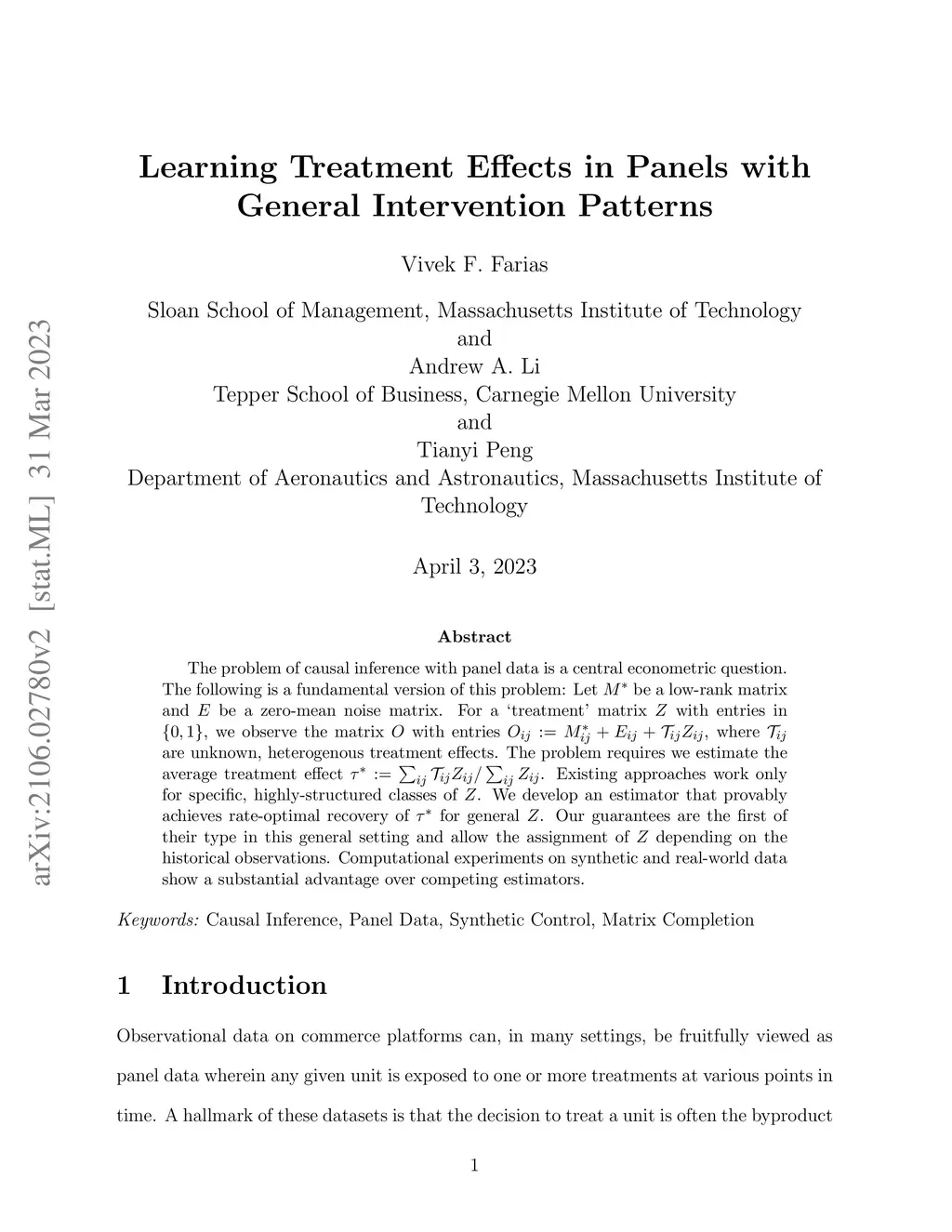 Learning Treatment Effects in Panels with General Intervention Patterns
