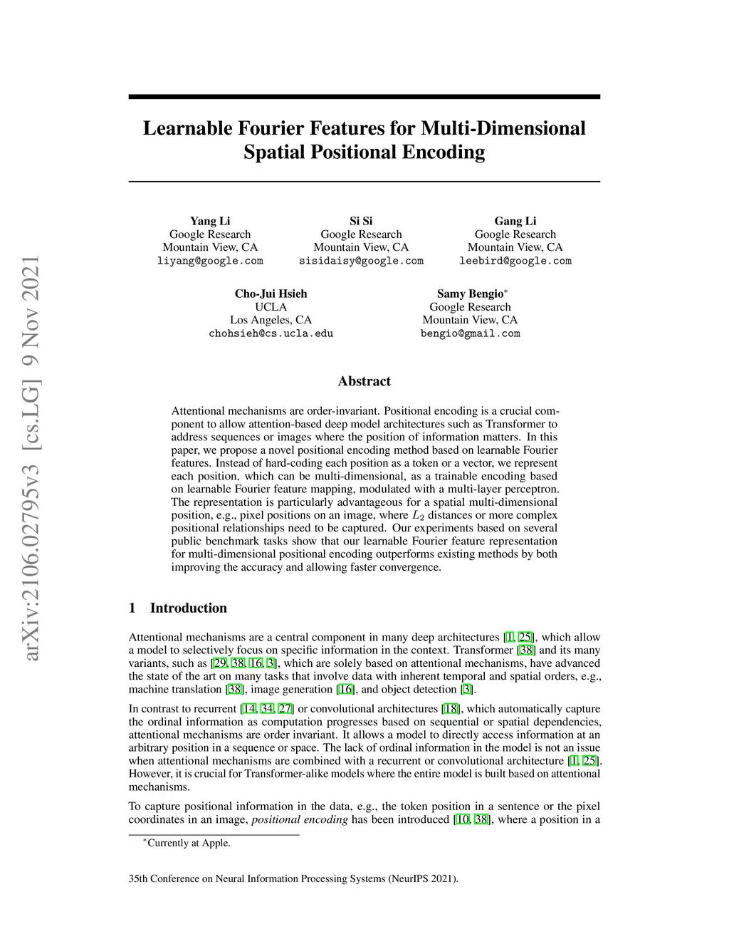 Learnable Fourier Features for Multi-Dimensional Spatial Positional