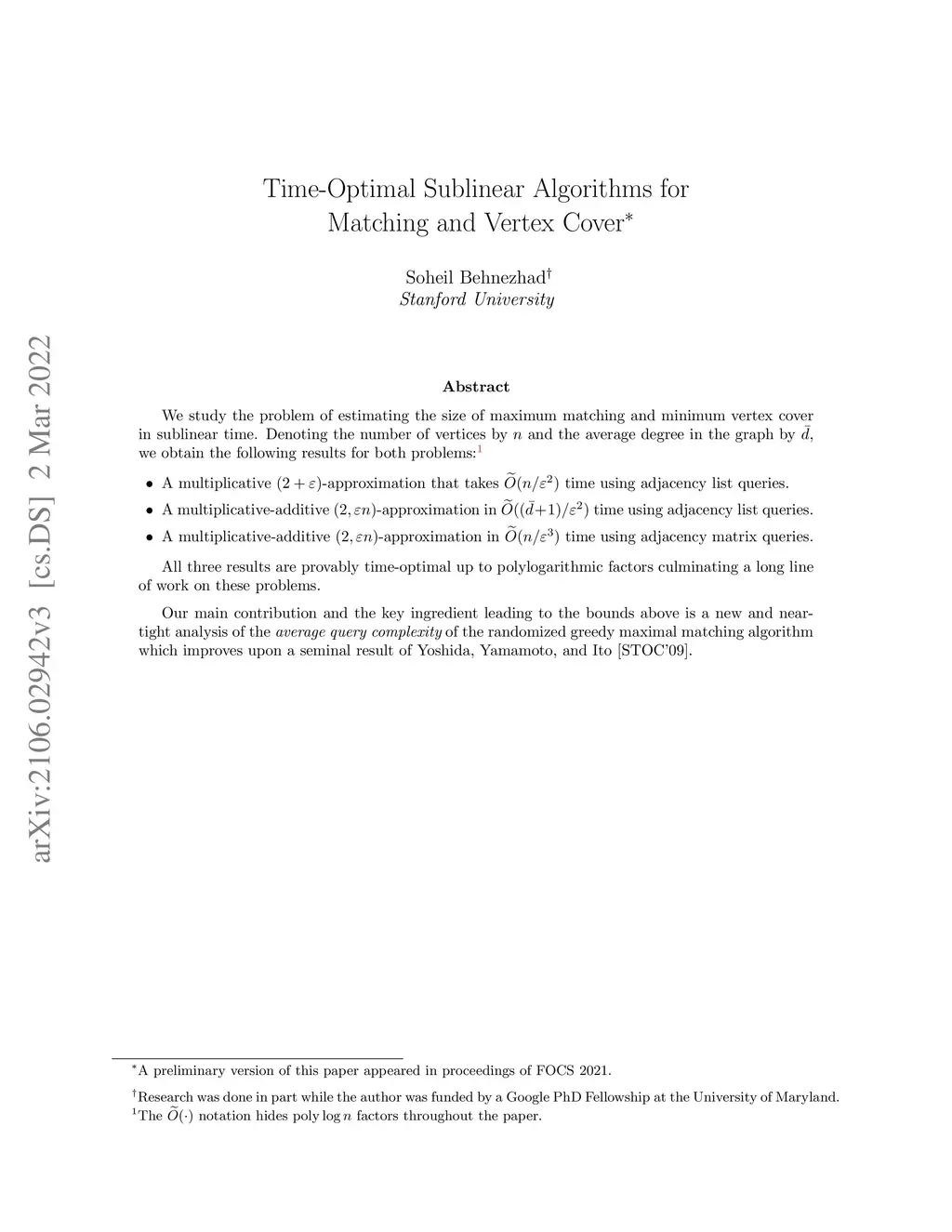 We study the problem of estimating the size of maximum matching and minimum vertex cover in sublinear time. Denoting the number of vertices by and the average degree in the graph by , we obtain the following results for both problems: * A multiplicative -approximation that takes time using adjacency list queries. * A multiplicative-additive -approximation in time using adjacency list queries. * A multiplicative-additive -approximation in time using adjacency matrix queries. All three results are provably time-optimal up to polylogarithmic factors culminating a long line of work on these problems. Our main contribution and the key ingredient leading to the bounds above is a new and near-tight analysis of the average query complexity of the randomized greedy maximal matching algorithm which improves upon a seminal result of Yoshida, Yamamoto, and Ito [STOC'09].