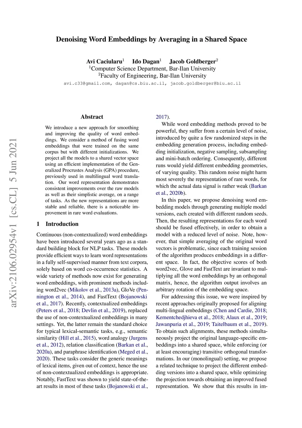 We introduce a new approach for smoothing and improving the quality of word embeddings. We consider a method of fusing word embeddings that were trained on the same corpus but with different initializations. We project all the models to a shared vector space using an efficient implementation of the Generalized Procrustes Analysis (GPA) procedure, previously used in multilingual word translation. Our word representation demonstrates consistent improvements over the raw models as well as their simplistic average, on a range of tasks. As the new representations are more stable and reliable, there is a noticeable improvement in rare word evaluations.